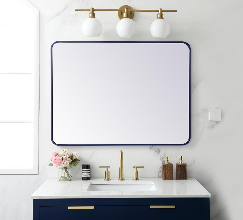 Dimensions Length: 30" Width: 1" Height: 40" Specifications Product Type: Vanity Mirrors Wire Included: No Harware Material: Metal Fixture Material: Metal and MDF Product Shape: Rectangle Assembly Required: no Distressed Finish: No Hardware Finish: Blue Mirror Frame Shape: Rectangle Mirror Hanging Orientation: Vertical and Horizontal Mirror Mounting: Metal Inset hanger Frameless: No Weight: 26 Product Warranty: 1 year limited Shipment type: Oversized Ground
