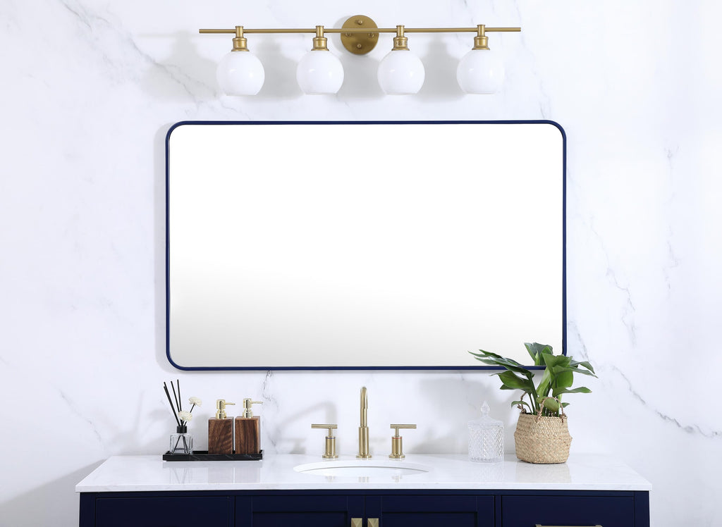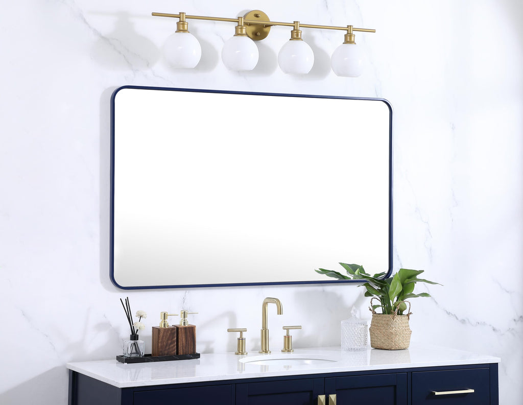 Dimensions Length: 30" Width: 1" Height: 48" Specifications Product Type: Vanity Mirrors Wire Included: No Harware Material: Metal Fixture Material: Metal and MDF Product Shape: Rectangle Assembly Required: no Distressed Finish: No Hardware Finish: Blue Mirror Frame Shape: Rectangle Mirror Hanging Orientation: Vertical and Horizontal Mirror Mounting: Metal Inset hanger Frameless: No Weight: 31 Product Warranty: 1 year limited Shipment type: Oversized Ground