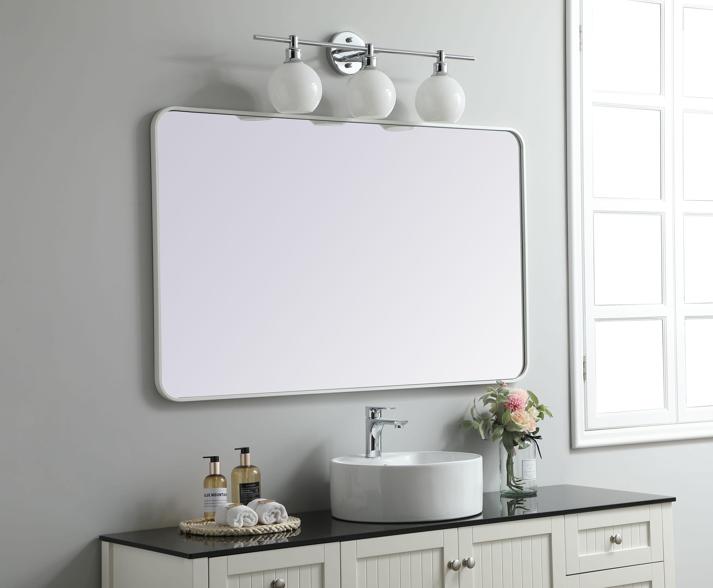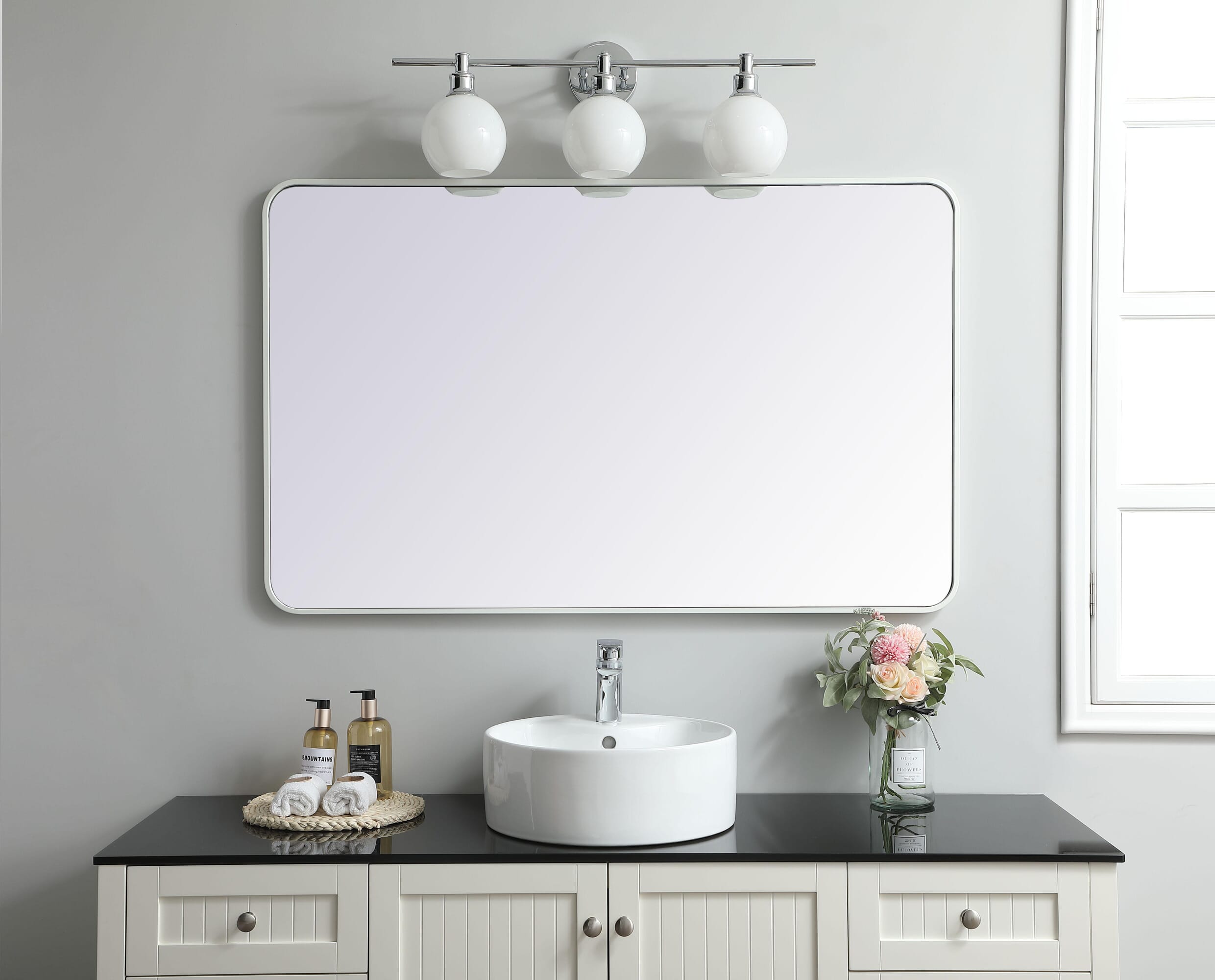 Dimensions Length: 30" Width: 1" Height: 48" Specifications Product Type: Vanity Mirrors Wire Included: No Harware Material: Metal Fixture Material: Metal and MDF Product Shape: Rectangle Assembly Required: no Distressed Finish: No Hardware Finish: White Mirror Frame Shape: Rectangle Mirror Hanging Orientation: Vertical and Horizontal Mirror Mounting: Metal Inset hanger Frameless: No Weight: 31 Product Warranty: 1 year limited Shipment type: Oversized Ground