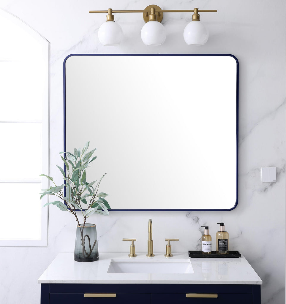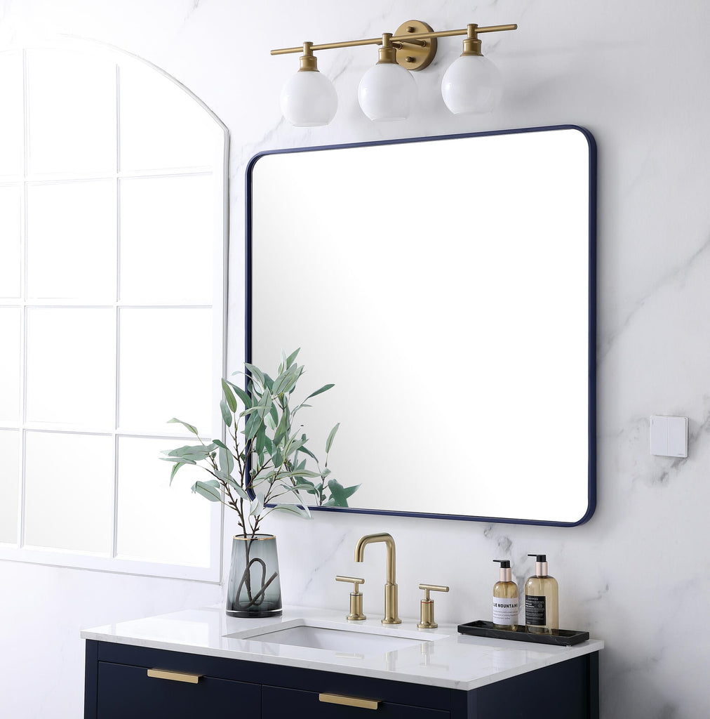 Dimensions Length: 36" Width: 1" Height: 40" Specifications Product Type: Vanity Mirrors Wire Included: No Harware Material: Metal Fixture Material: Metal and MDF Product Shape: Rectangle Assembly Required: no Distressed Finish: No Hardware Finish: Blue Mirror Frame Shape: Rectangle Mirror Hanging Orientation: Vertical and Horizontal Mirror Mounting: Metal Inset hanger Frameless: No Weight: 31 Product Warranty: 1 year limited Shipment type: Oversized Ground