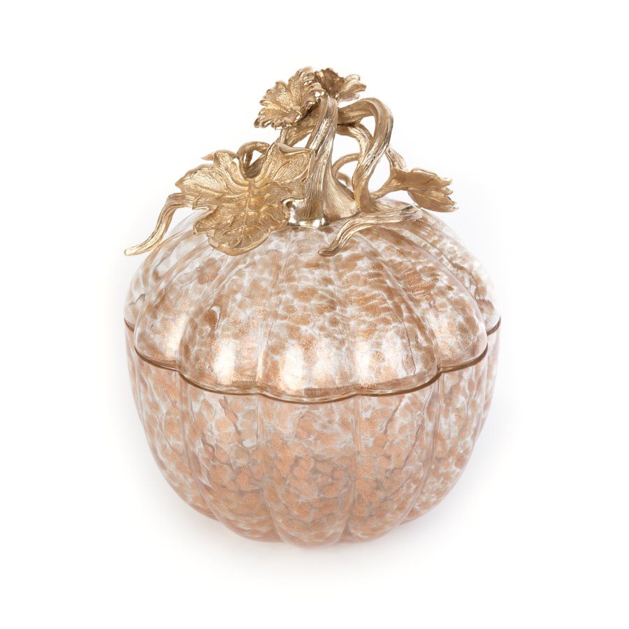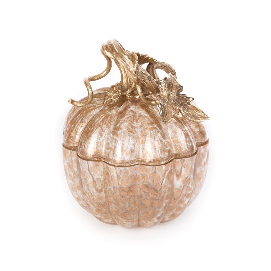 Make a Hadley Leaf & Vine Gilded Glass Jar part of an opulent cornucopia celebrating the start of a fruitful holiday season. Your table will be overflowing when accented with an exuberant mix of our golden decor—each piece mouth-blown in gold-shaded glass.