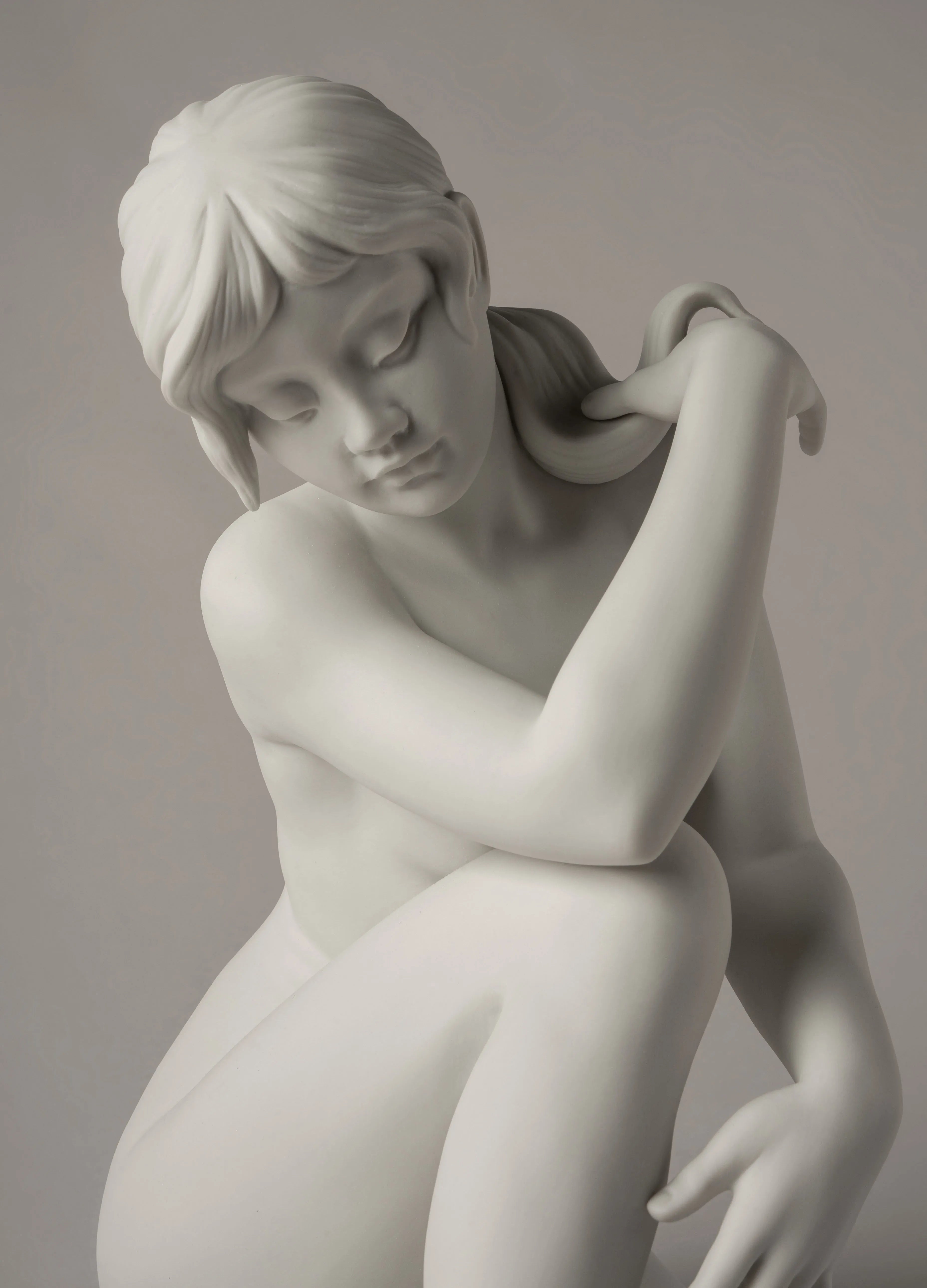 Pure harmony, peace and delicacy. A woman's body portrayed in its most classical form, in this matte white porcelain creation. An evident example of the mastery and absolute control of composition and modelling of Lladro sculptors.