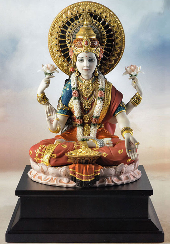 This is the original High Porcelain Goddess Lakshmi sculpture which is the sister piece to Lladro #01001965 Lord Ganseha, which was an almost instant sell out back in 2010.