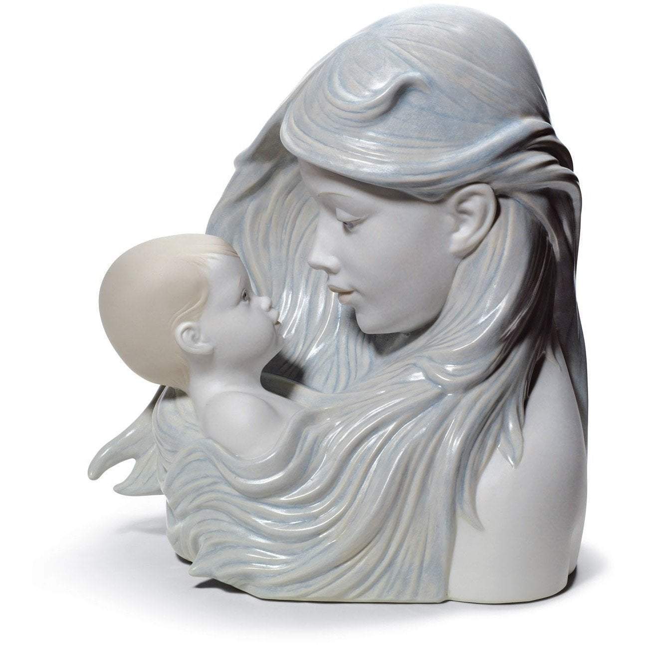 The most striking feature of this piece is undoubtedly the look and expression on the mothers face. A bust depicting a mother with her beautiful hair gently enveloping her child. In this piece the sculptor wanted to express that special bond between a mother and her child.