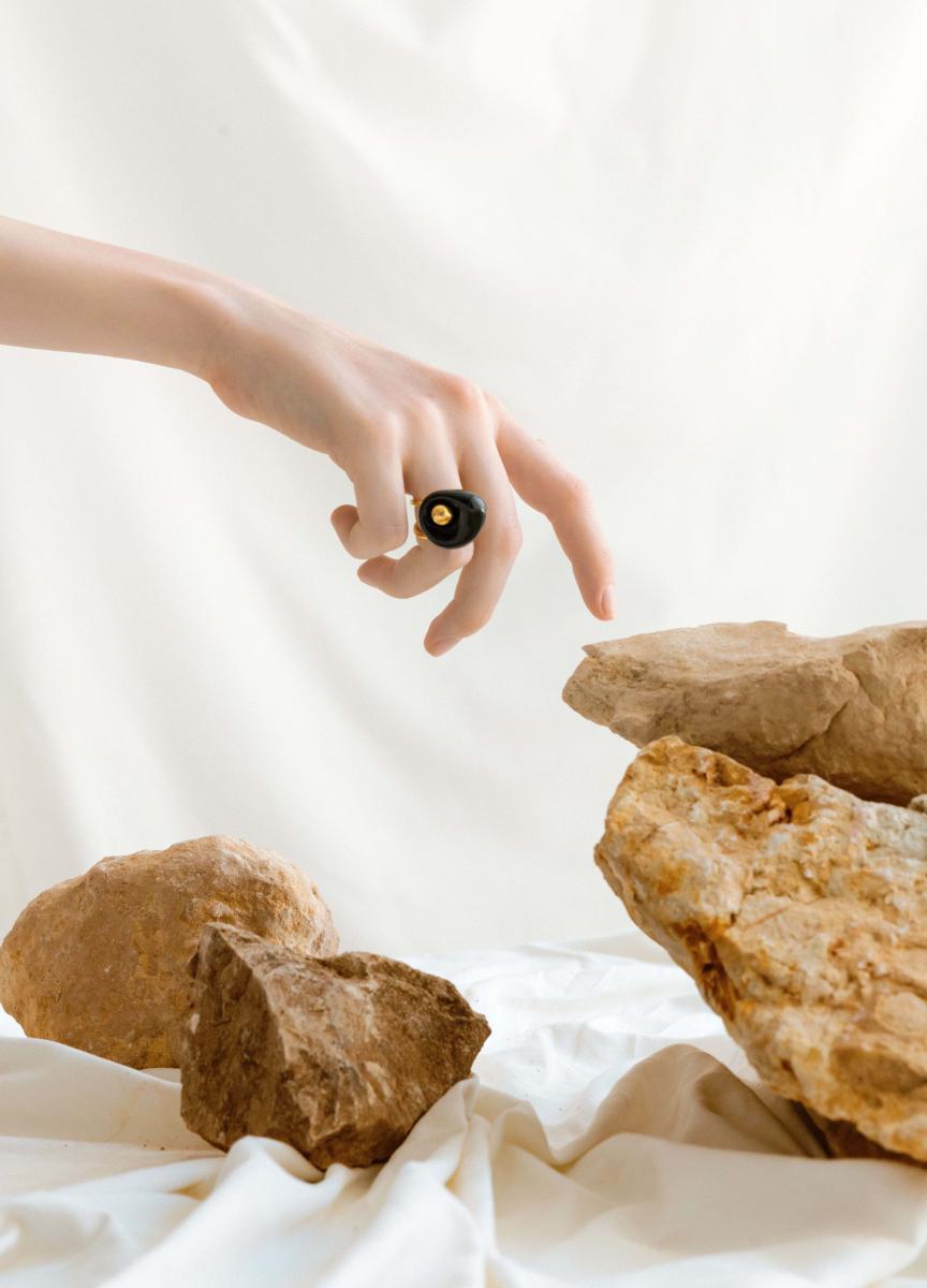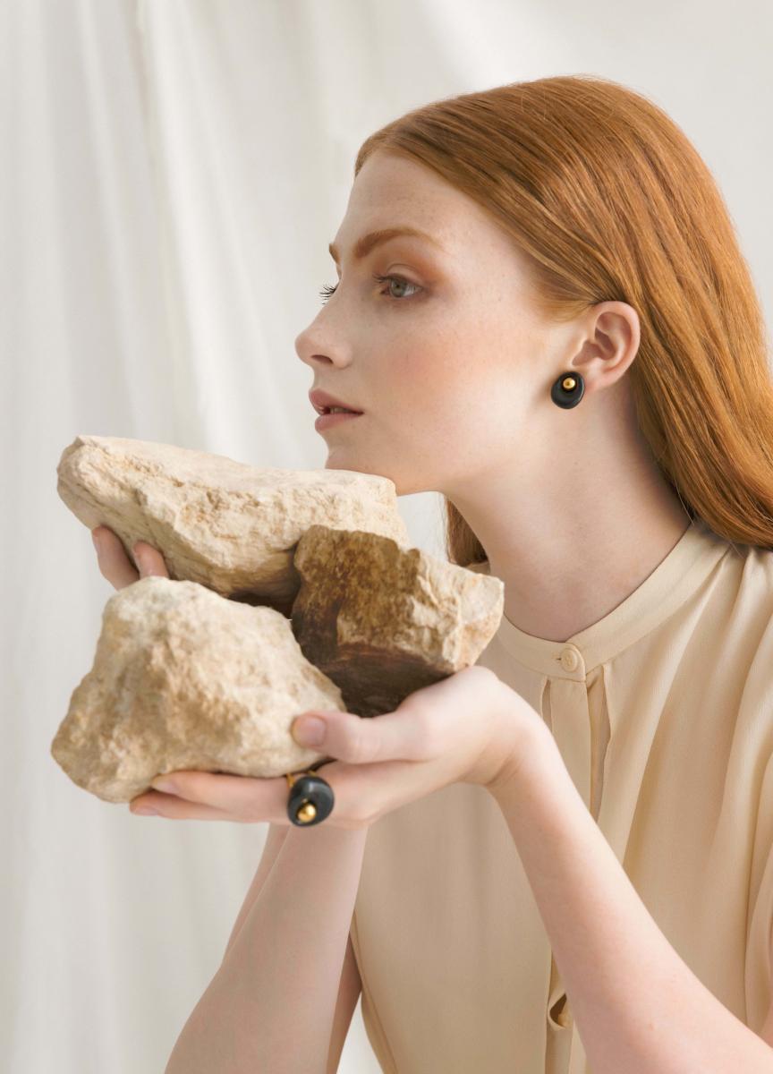 Golden Pebbles is a collection inspired by the earth’s most primary materials, synthetizing them in little pieces of jewelry whose serene beauty captivates us. Like tiny nuggets of gold discovered among the smooth stones of a river. The metal parts of these stud earrings are gold-plated 925 sterling silver.
