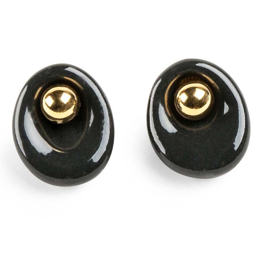 Lladro Golden Pebbles Stud Earrings Black Beige Golden Luster 01010295