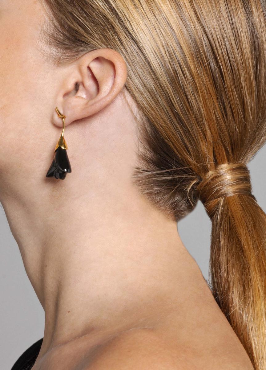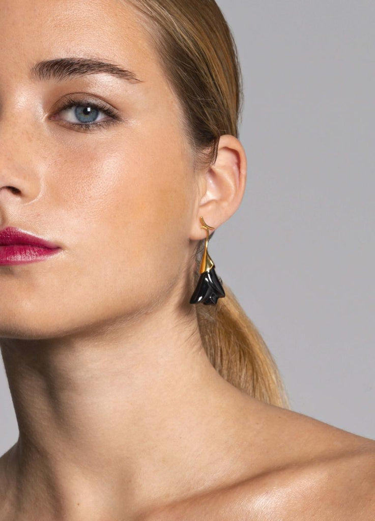 Short earrings inspired by the organic forms of nature. Natural beauty that comes from harmony, perfect proportions, the delicate simplicity of a flower turned into jewel. Designed in the form of a succession of delicate leaves in black they are perfect for women looking for original, elegant, contemporary and fresh creations. A small handmade work of art in Valencia, Spain.