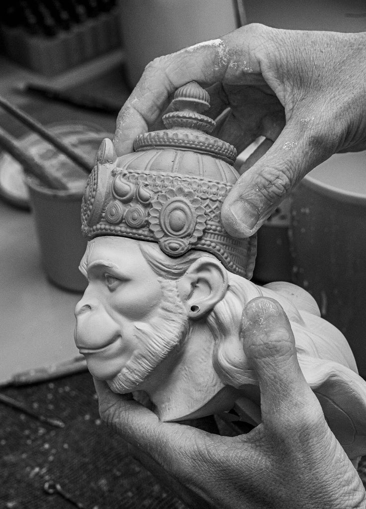 Lord Hanuman in porcelain is a monumental work that measures up to the deity it represents.