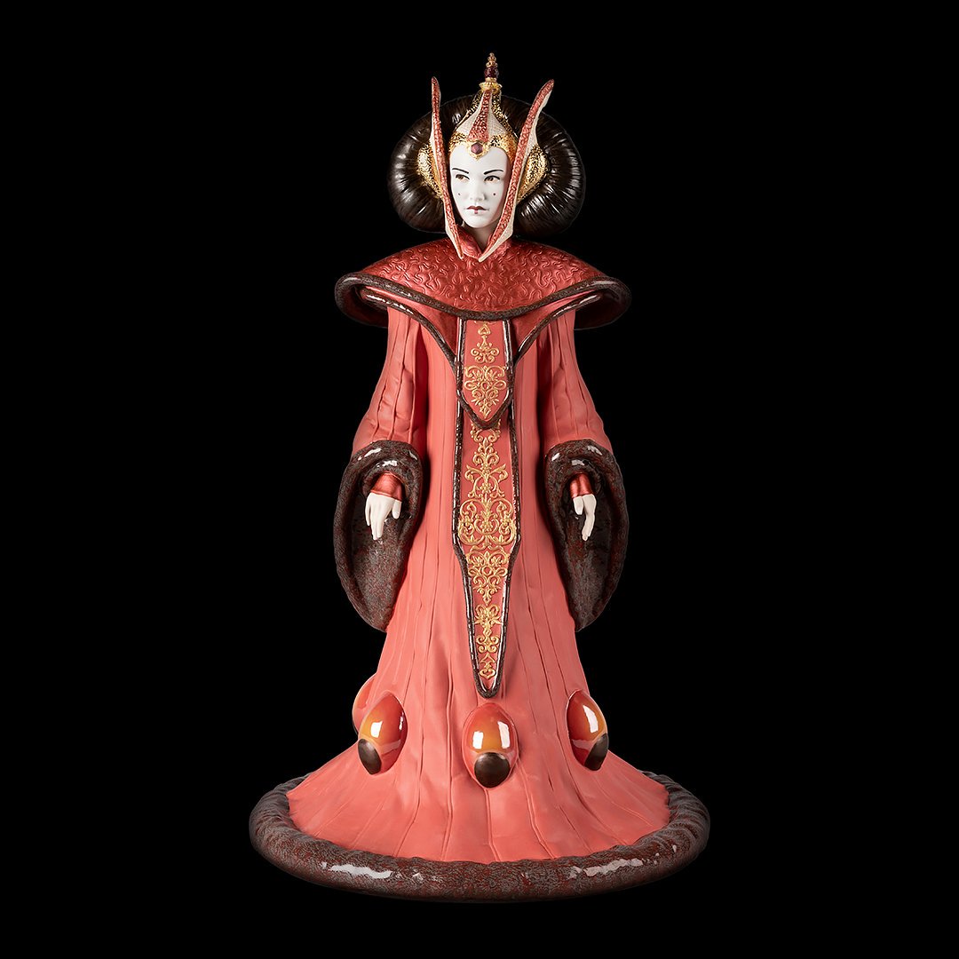 The Lladro Star Wars Queen Amidala 01009413 depicts the much-admired character from the saga wearing her Throne Room ceremonial gown, one of the most sumptuous robes in her royal wardrobe. A Limited Edition of just 1000 pieces worldwide.