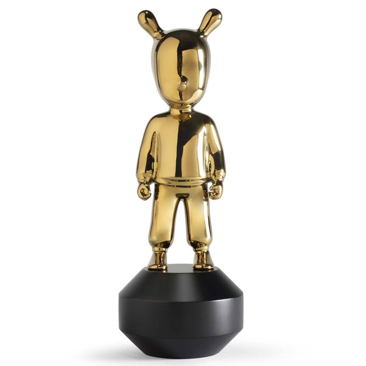 Bold and innovative creations, with surprising decorations that enhance designs that are here to stay. A porcelain piece in a golden metallic color on a black base, perfect for decorating contemporary interiors. Handcrafted in Spain.