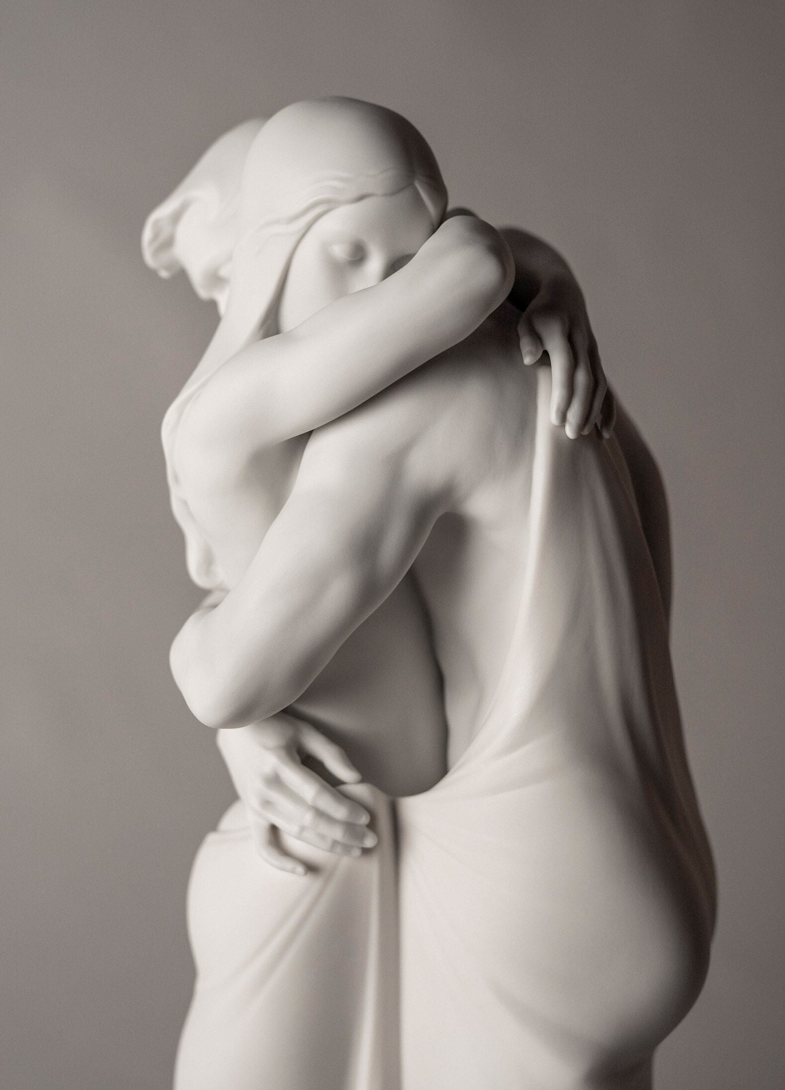 The sculptural ability of Lladro artists is readily evinced in creations like this. The superb modeling of the bodies is further accentuated by the use of matte porcelain whose texture and definition make it the perfect vehicle for expression. Just You and Me conveys the deep bond produced by a warm embrace, by love and by moments of intimacy that make you forget everything else.