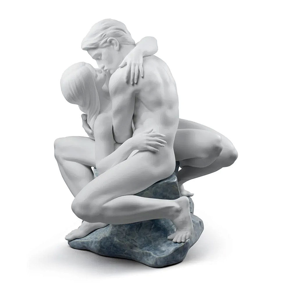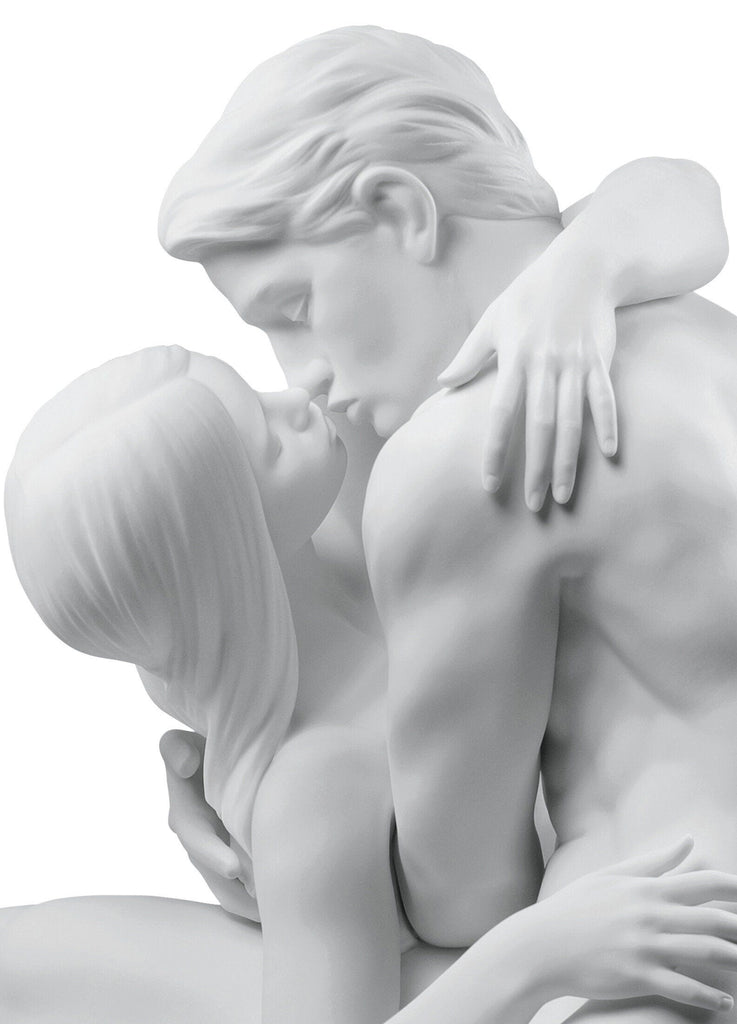 Lladro Passionate Kiss 01008727 is one of the few pieces in the Lladro Porcelain line to openly represent passionate love, desire and the attraction between a man and woman about to join in an ardent kiss.