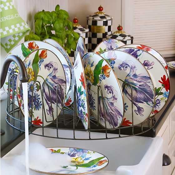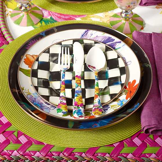 Set a sunny table in glorious color, fresh from a country garden, with White Flower Market Dinner Plates. The garden-fresh design is color-glazed and hand decorated enamelware with floral transfers on both sides. Mix and match colors or pair with Courtly Check for a fun, fresh look, or for a bold arrangement, choose a single color for the entire table.