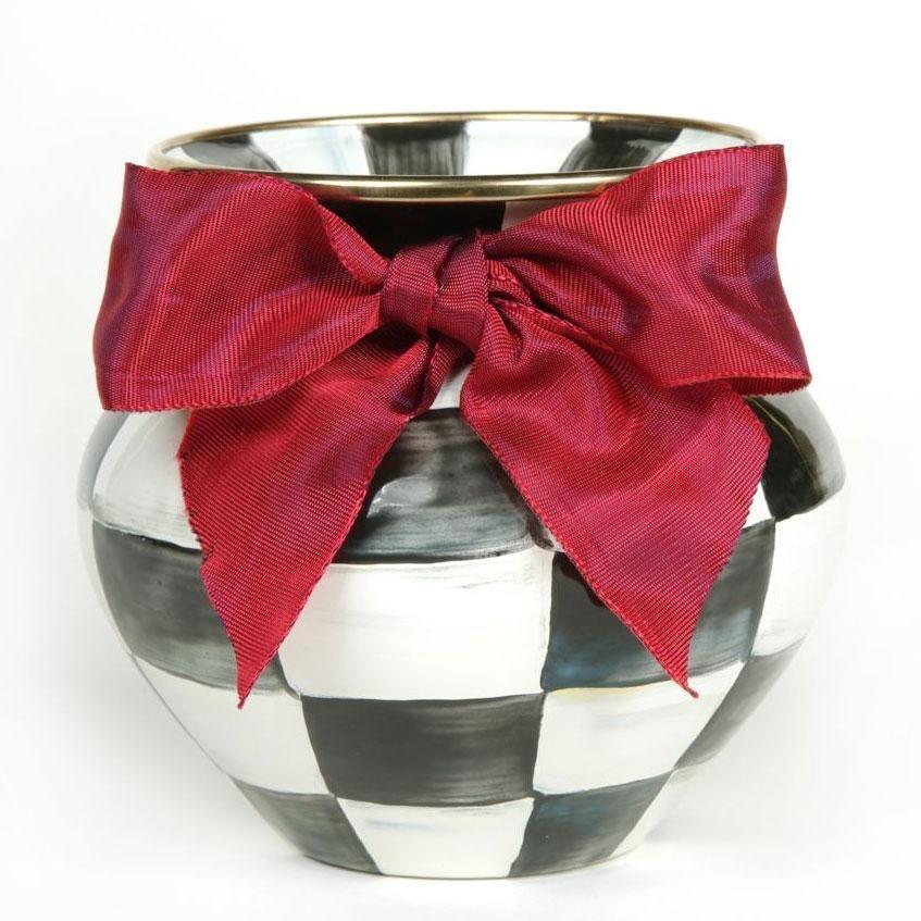 Mackenzie Childs Courtly Check Vase Red Bow 08-89820-40A