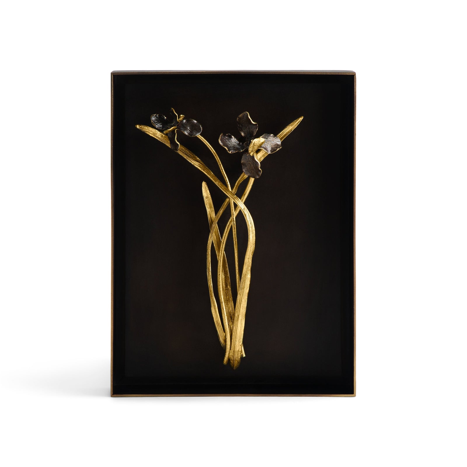 The Black Iris Collection is inspired by the vitality and beauty of the iris flower. Named after the Greek word for rainbow, the idea of a black rainbow feels oxymoronic and mysterious. Michael uses contrasting oxidized and polished brass, as his way of doubting the question of whether there is such a thing as an iris which is truly black in nature.
