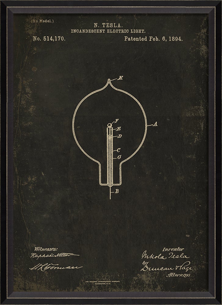 Spicher & Company BC Tesla Patent US 514170 on Black Sm 18241
