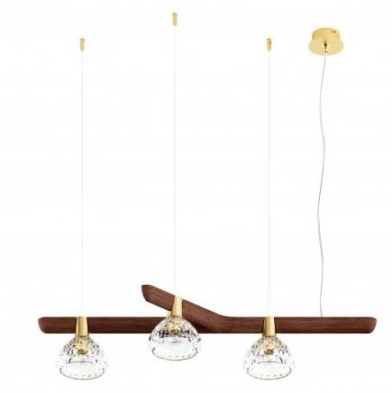 St Louis Crystal Folia 3 Light Right Unit Dark Wood Pendant Light