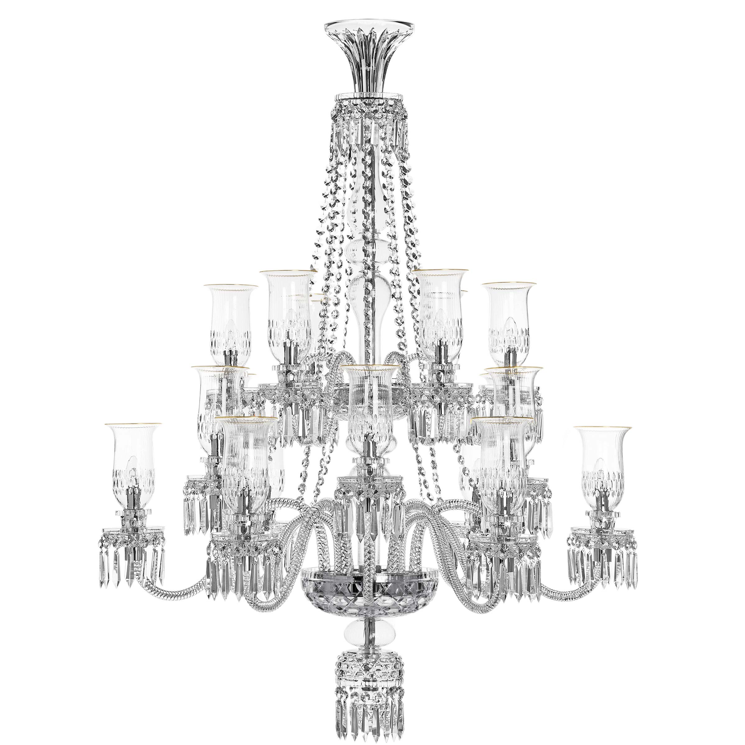 St Louis Crystal Royal 18 Light Tall Chandelier With Apollo Gold Hurricanes