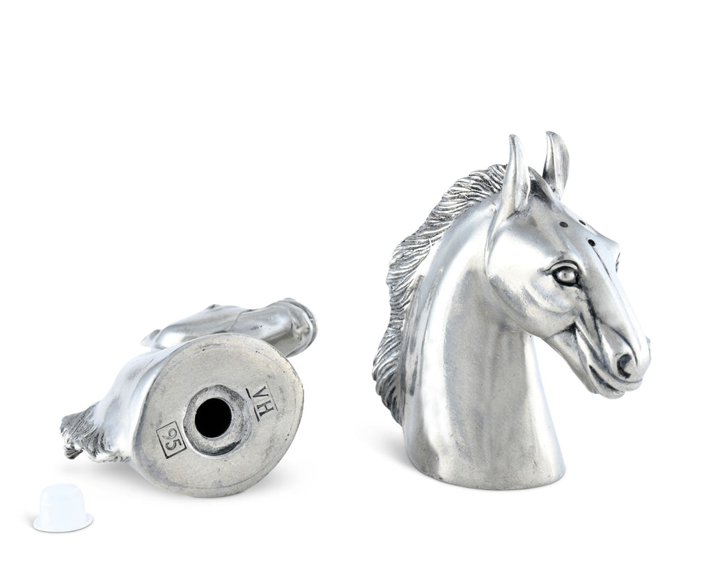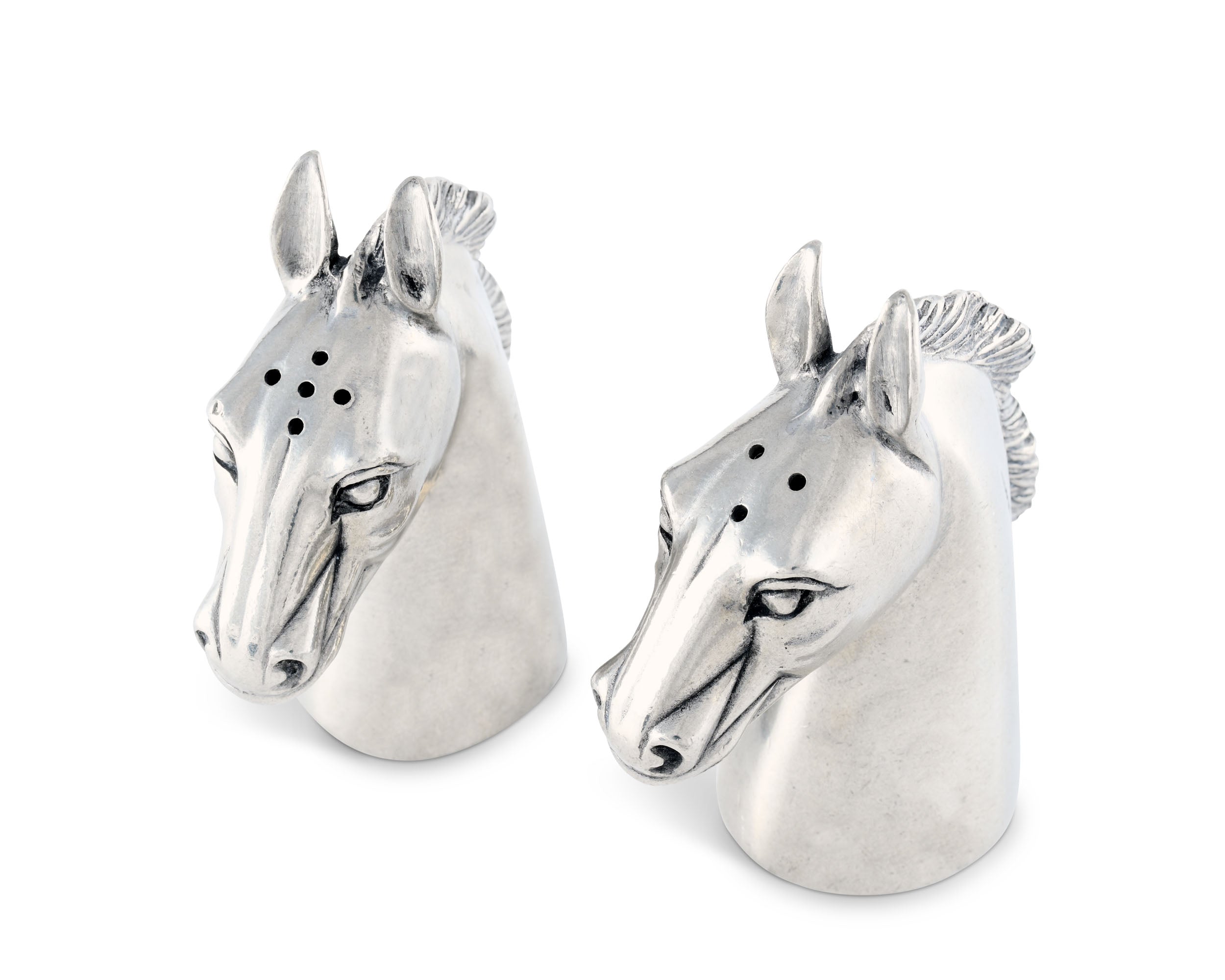 Detailed statuettes of a proud steed, Vagabond House's Pewter Thoroughbred Salt & Pepper set will bring a touch of equestrian elegance to your table. Crafted from pure pewter and hand-finished.