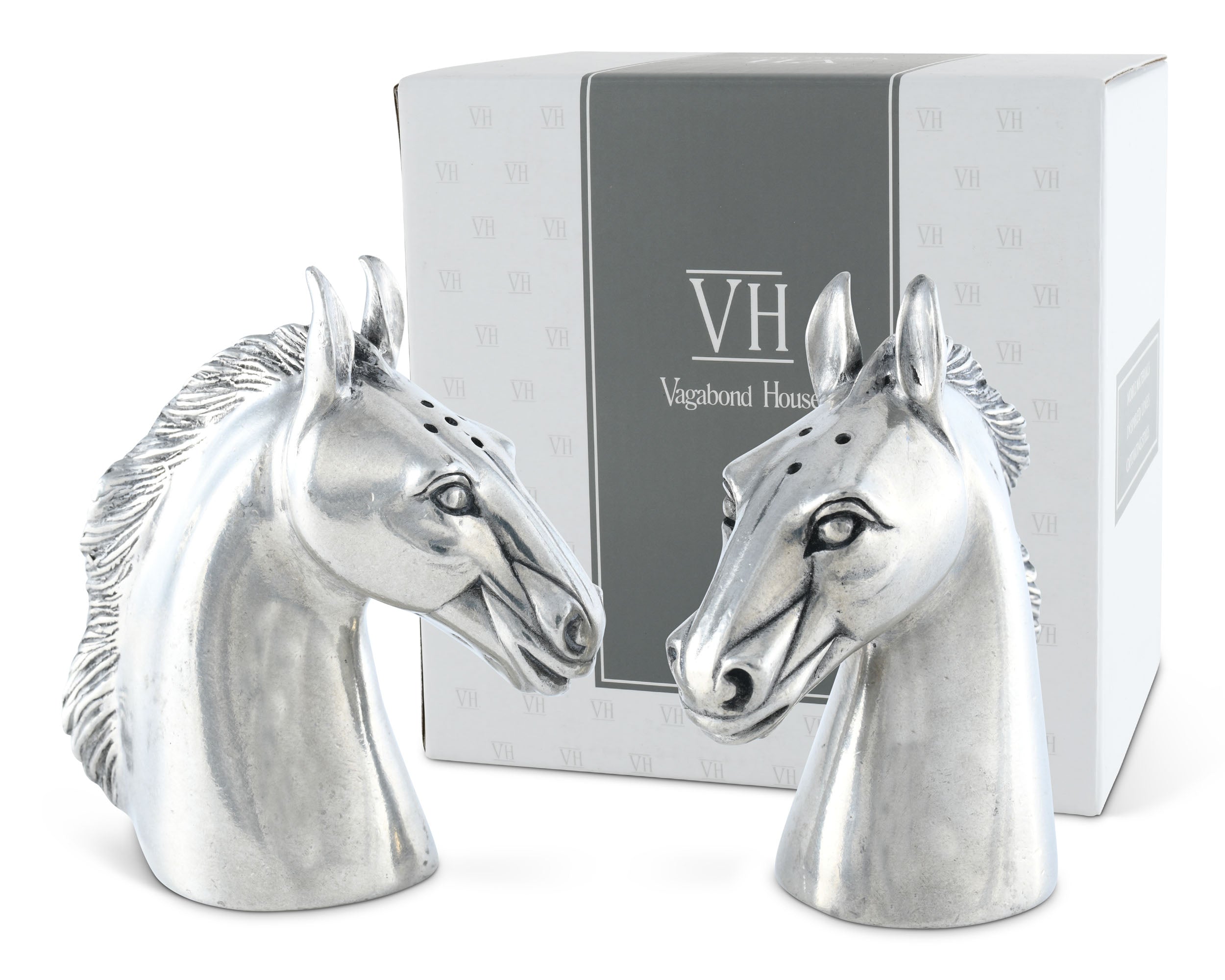 Vagabond House Equestrian Pewter Horse Head Salt & Pepper Set H116A