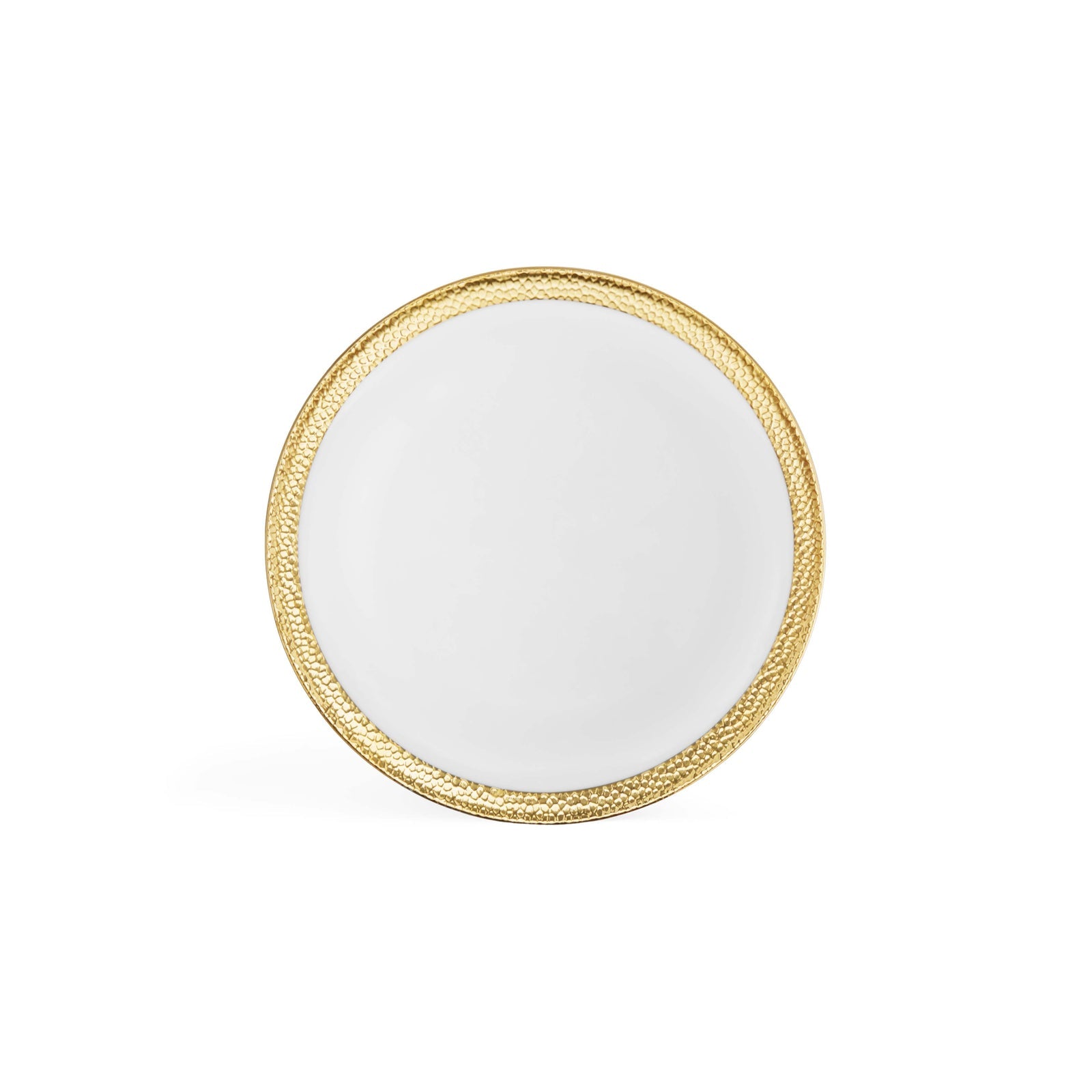 The Michael Aram Goldsmith Collection is an homage to the simple beauty of the metal forger's craft. Hammertone techniques have been a cornerstone in jewelry and metal crafting for millennia, and each mark bears silent testament to the skill of the craftsman. The Goldsmith Collection of fine porcelain strives to capture the random and organic feeling of this age old process. The porcelain is also designed to integrate perfectly with any of Michael's other dinnerware patterns. The unified body shapes used in all of the motifs make mixing and matching the patterns a seamless proposition.