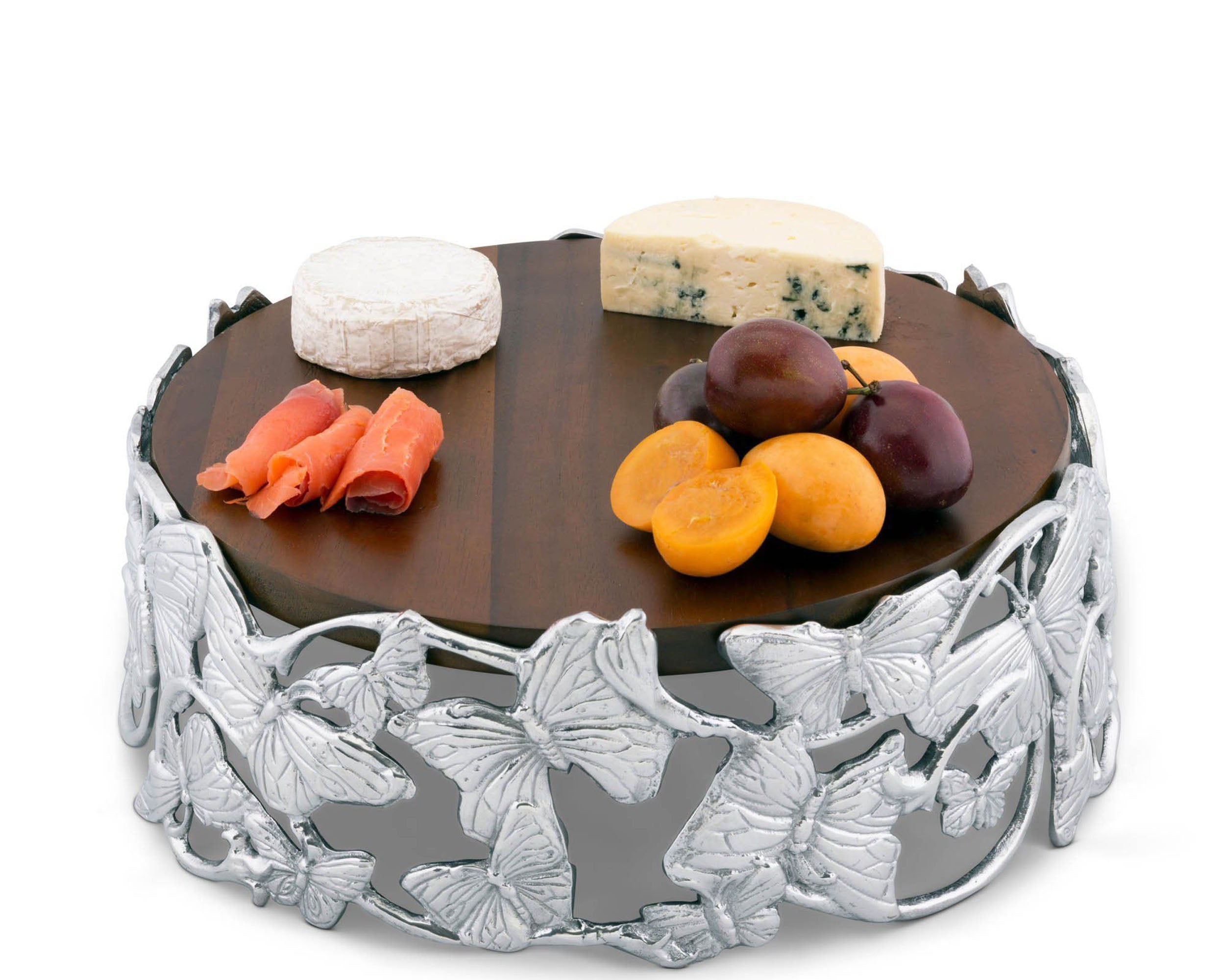 Fix a gorgeous cheese display on the rich, wooden stage of this Butterfly Pedestal from Arthur Court.