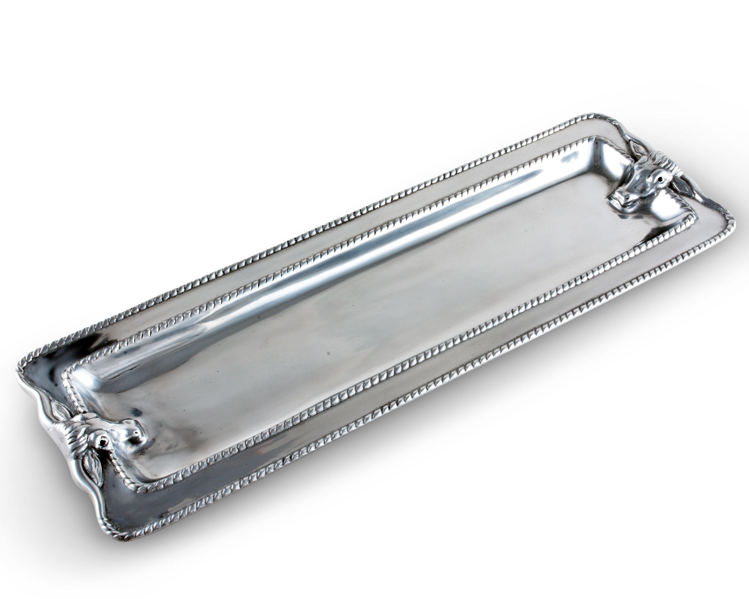 Spotlight your favorite dish by putting it in this 17-inch Longhorn with Braid Oblong Tray from Arthur Court.