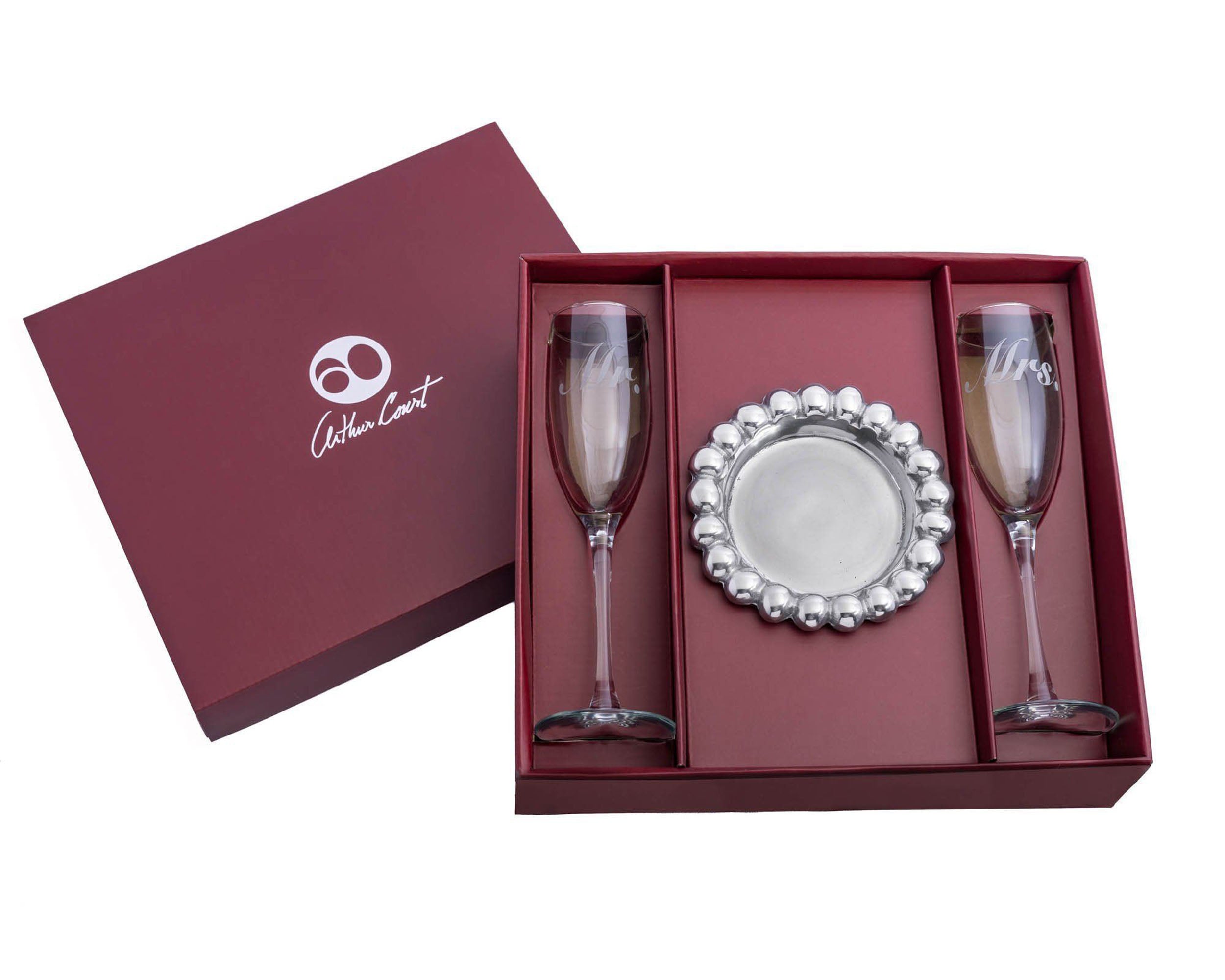 Kick off your marriage celebration in style with this Mr & Mrs Champagne Set from Arthur Court.