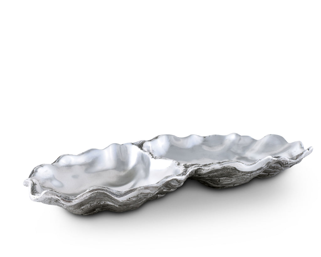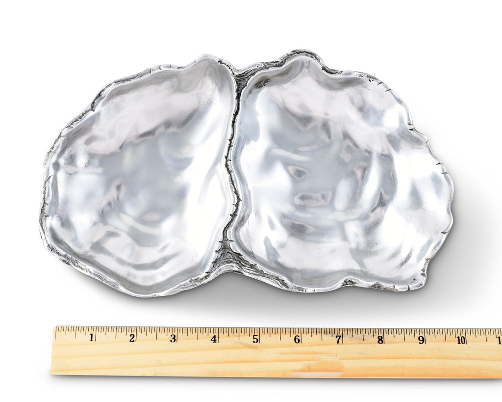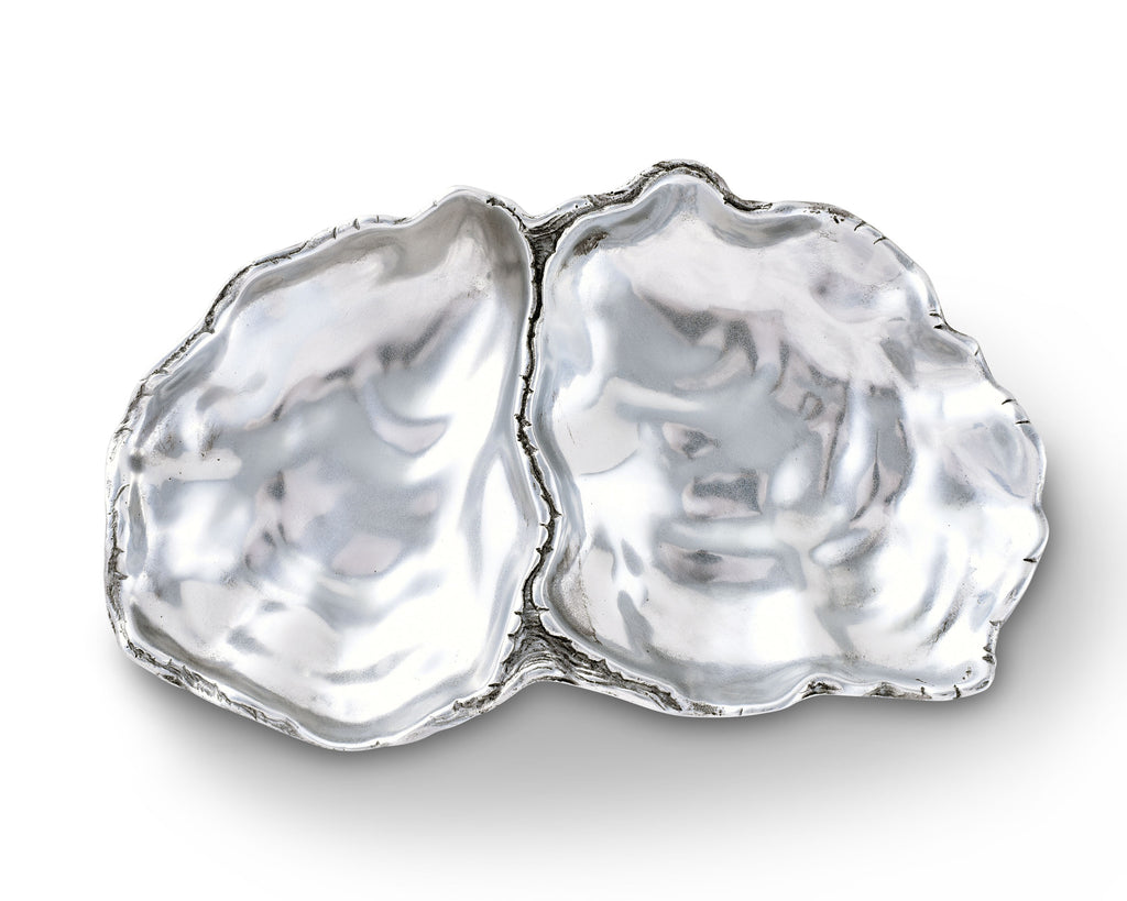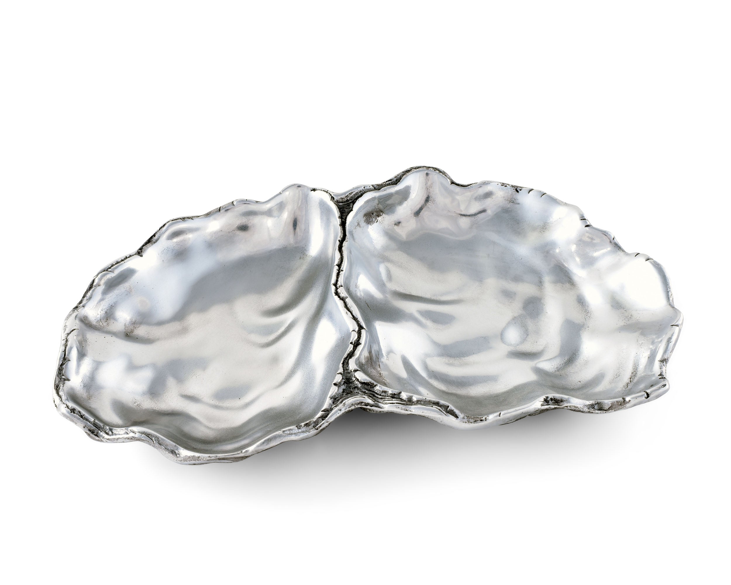 As unique as the shell fish that inspired it's design, our Oyster Catch-All Tray is hand-crafted in Arthur Court's signature aluminum alloy. The design of an open oyster shell has plenty of room to hold glasses, keys or jewelry wherever you decide to display the tray. You can also serve tasty bites on it if you desire. We like it to hold extra picks on our seafood buffet table.