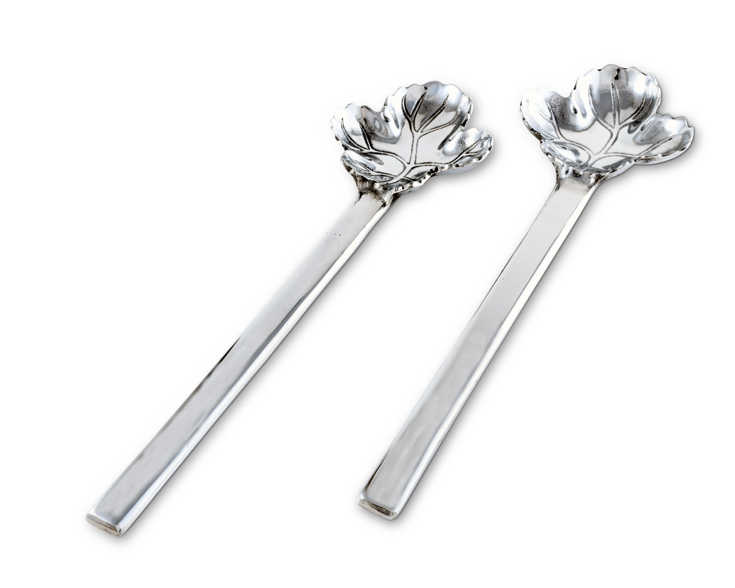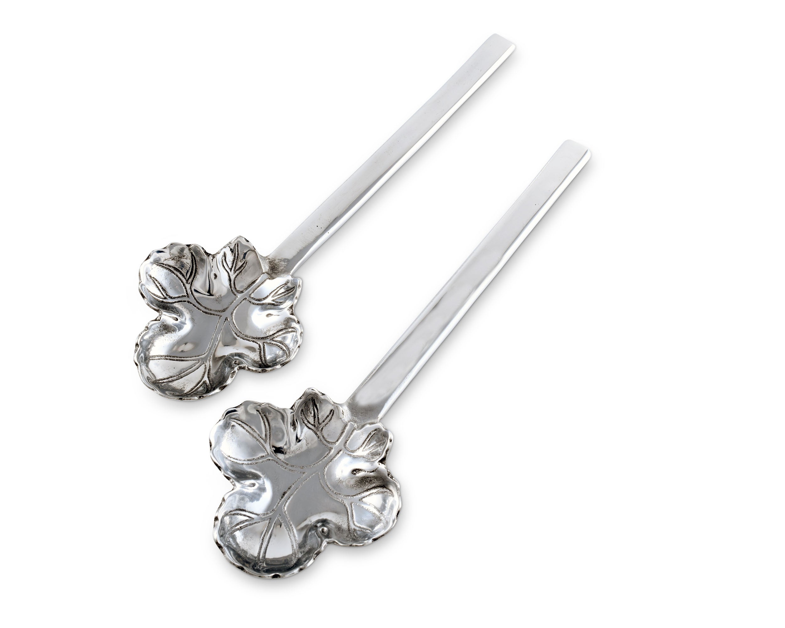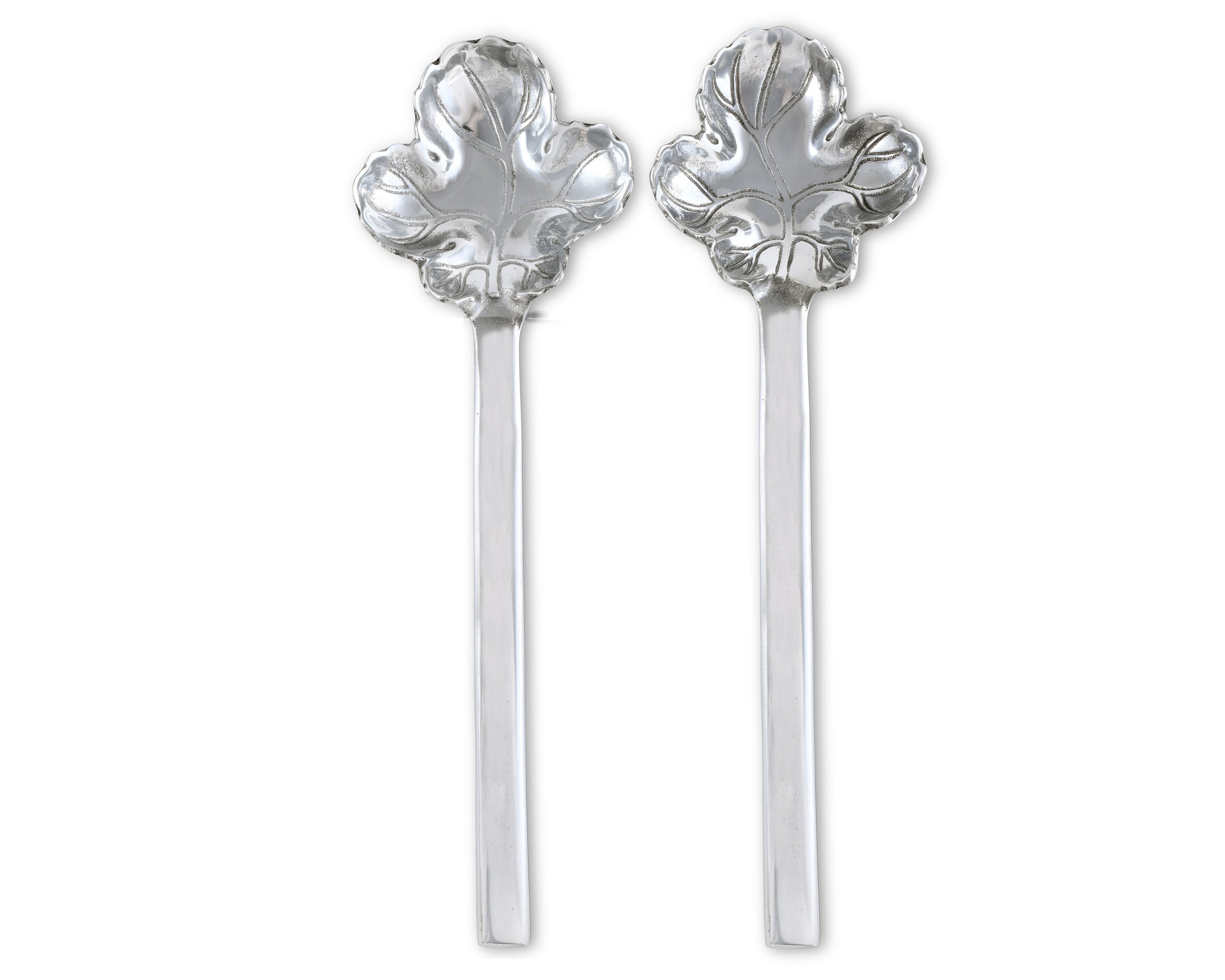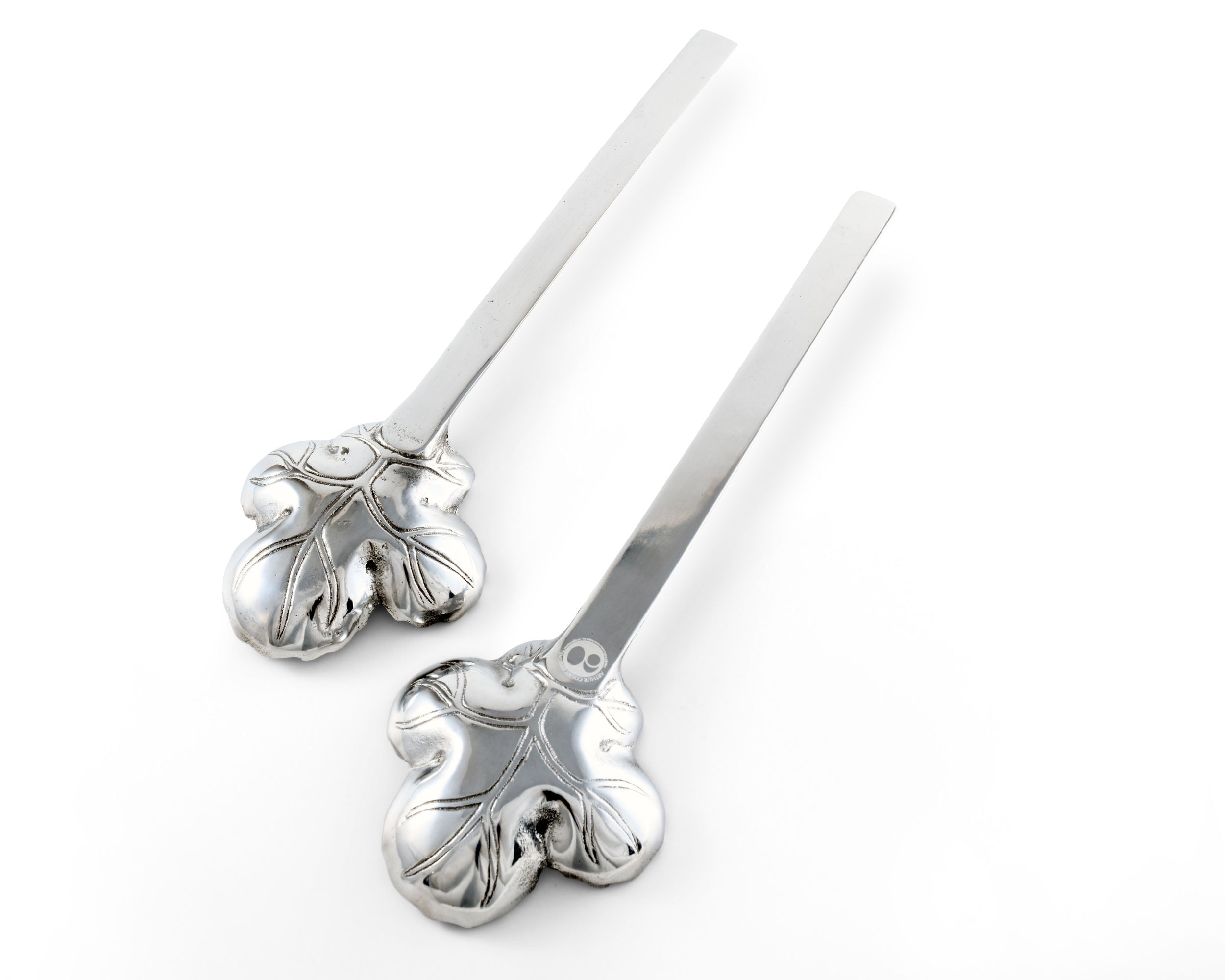 Simple handles end in dramatically styled grape leaves, creating a unique set of serving utensils hand-crafted in Arthur Court's signature aluminum alloy.