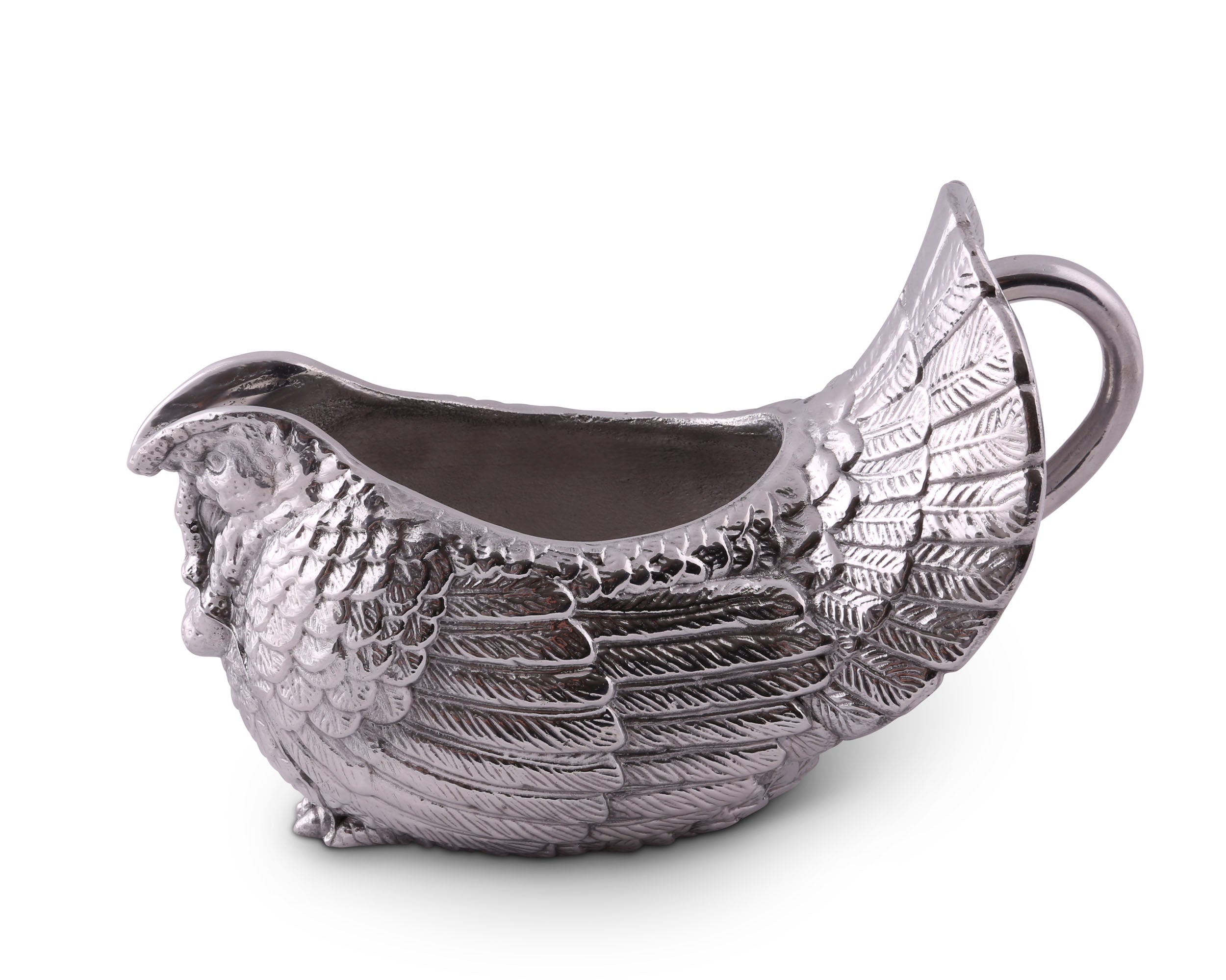 Allow this statuette to serve the signature sauce for its own meat inside Arthur Court's Turkey Gravy Boat.