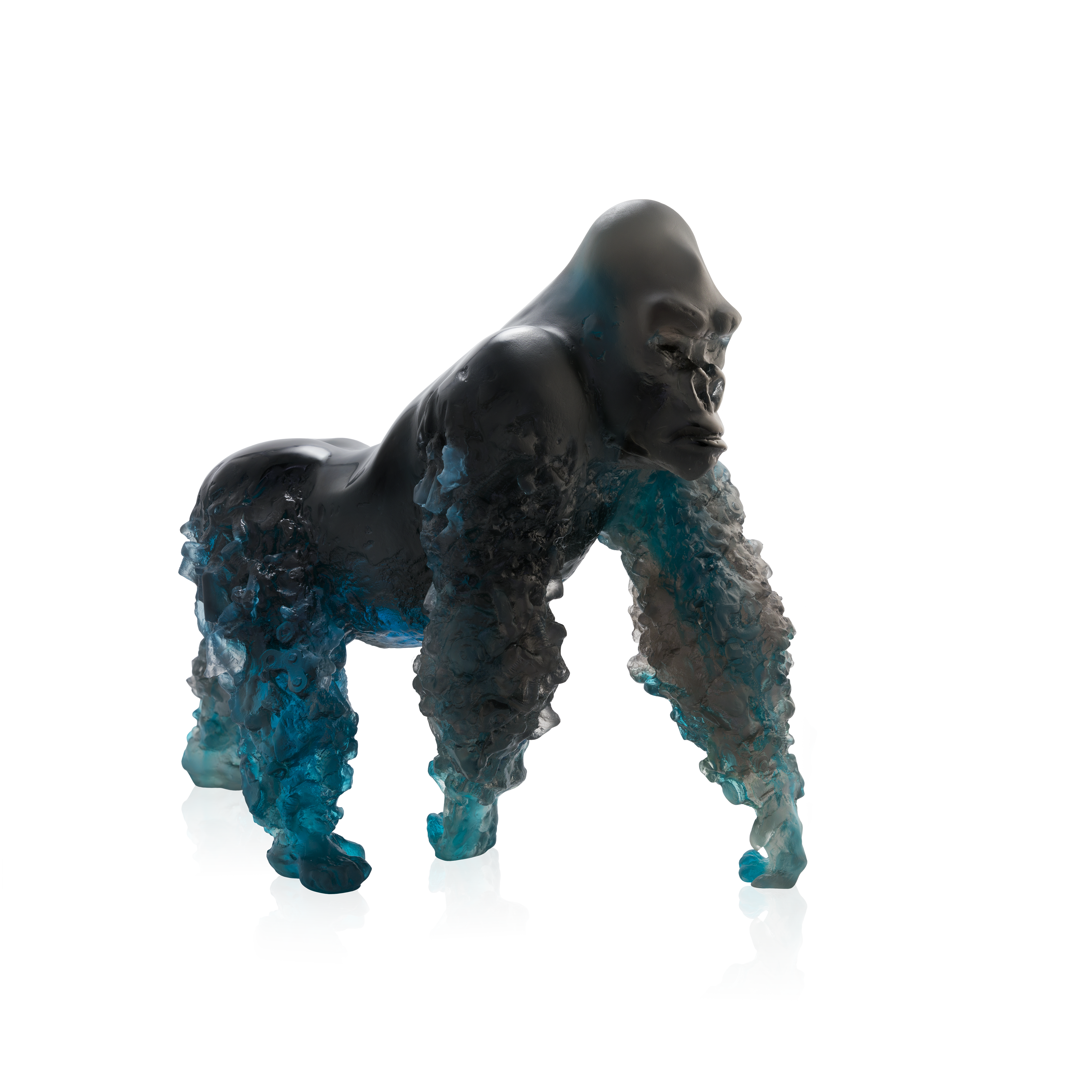 Daum Crystal Gorille Dos Argente Blue Grey Figurine 05703-1