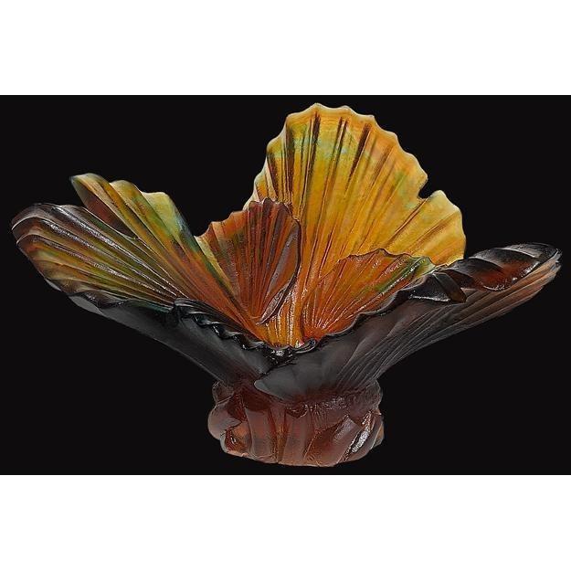 This floral designer has created for Daum an exotic collection in crystal with a thousand reflections, celebrating the grace and robustness of the palm tree in this small size magnum bowl of blue-green and amber crystal.