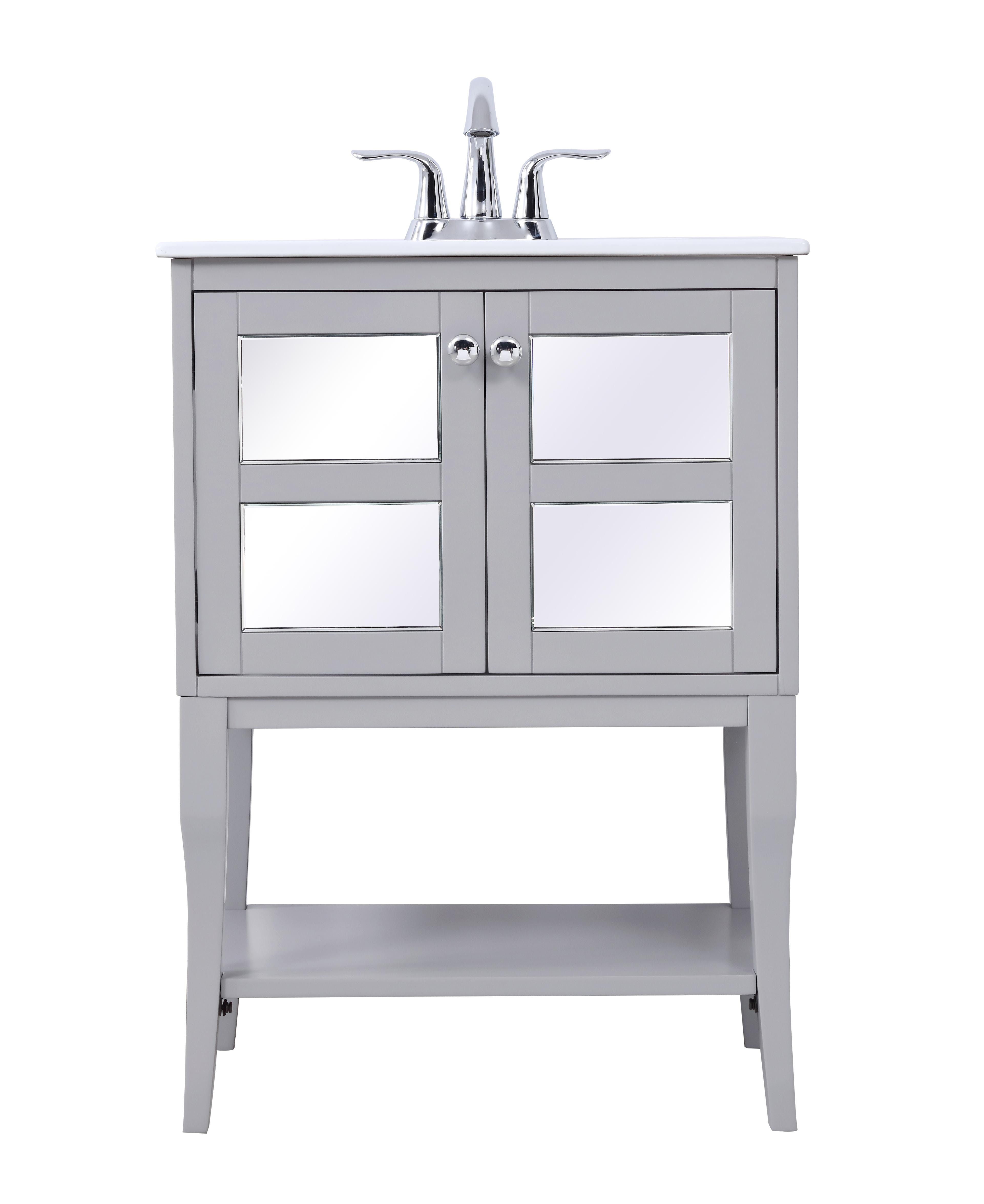 Installation Manual Dimensions Length: 24.38" Width: 18.5" Height: 33.38" Counter Top Length: 24-3/8"" Counter Top Width: 18-1/2"" Counter Top Height: 6-3/4"" Sink Width: 16-7/8"" Sink Depth: 10-5/8"" Sink Height: 4-3/4"" Sink Drain Hole Size: 1.75" Faucet Hole Spacing: 4" Specifications Product Type: Bathroom Vanities Wire Included: No Harware Material: metal Fixture Material: Wood, Metal, and Ceramic Base Material: MDF Faucet Included: No Faucet Type: centerset Drain Assembly Included: No Assembly Required: YES Distressed Finish: no Hardware Finish: Chrome Counter Top Finish: White Counter Top Edge Style: Flat Sink Mounting Type: Integrated Vanity Mounting Type: Free-Standing Vanity Backsplash: No Number of Sinks: 1 Number of Faucet Holes: 3 Wood Type: Poplar Weight: 66 Product Warranty: 1 year limited Shipment type: Small Parcel Drawers Drawers Included: NO Number of Drawers: 0 False Drawers: No Drawer Handle Designs: knob Shelves Number of Shelves: 1 Shelf Width: 21-3/4" Cabinets Number of Cabinets: 1 Cabinet Interior Width: 21-1/2" Cabinet Interior Depth: 17" Cabinet Interior Height: 15-1/2"