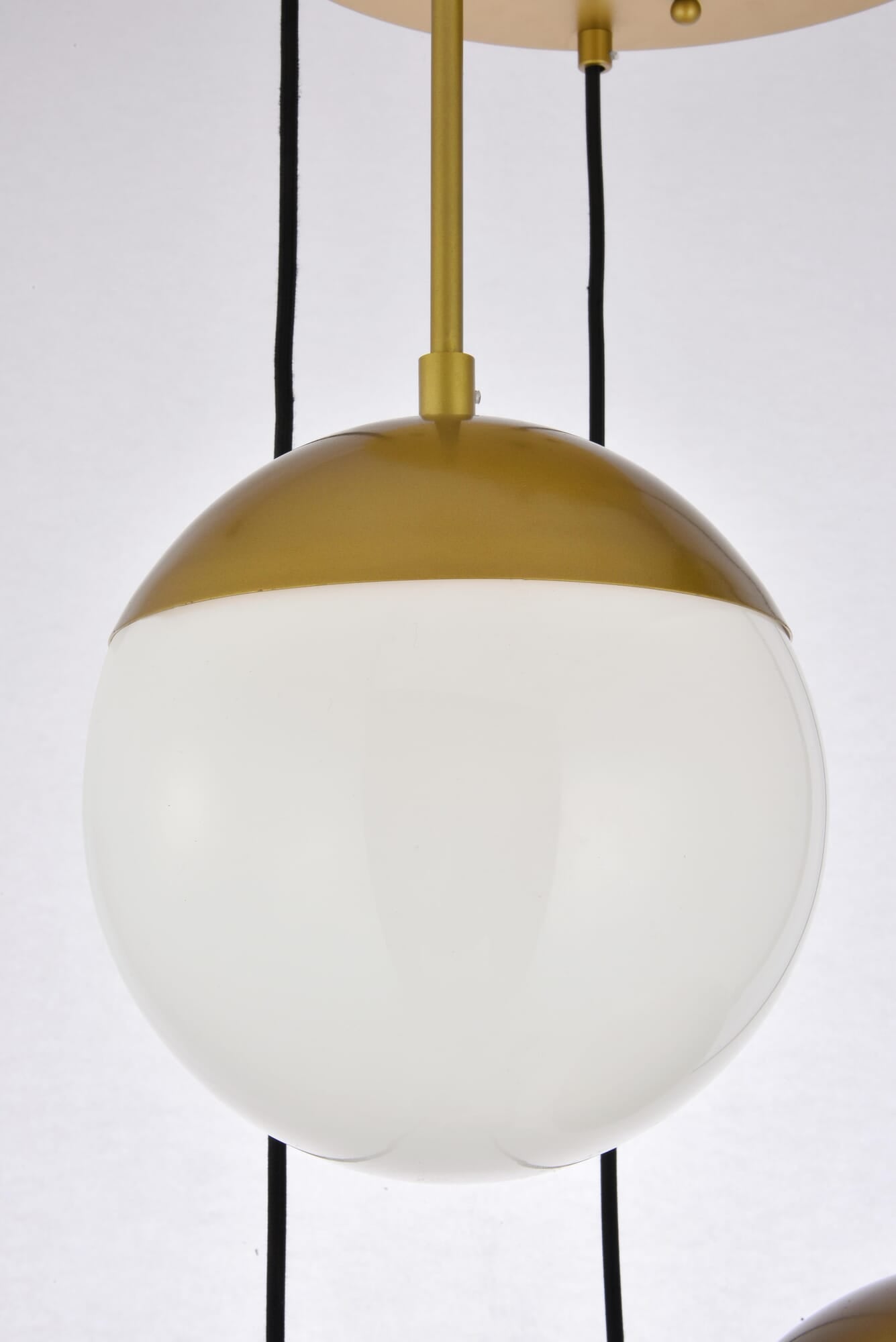 Dimensions Length: 18" Width: 18" Height: 9" Maximum Height: 78" Wire Length: 78.5" Specifications Product Type: Pendants Hanging Device: Black Fabric Cord Voltage: 110V - 125V Dimmable: Yes Socket Type: E26 Number of Lights: 5 Wattage/Bulb: 40 Max/Nominal Watt: 200 Wire Included: Yes Harware Material: Metal Fixture Material: Metal and Glass Product Shape: Pendants Assembly Required: No Hardware Finish: Brass UL & ULC Standard: UL,ULC Weight: 15.5 Product Warranty: 1 year limited Shipment type: Small Parcel