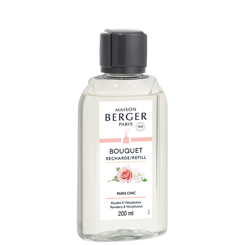 Imbue your home with a thoroughly modern floral atmosphere. The Paris Chic home fragrance opens on the tart scent of bergamot that swells under a delicate veil of morning dew. Airy notes of orris and discreet scents of violet blend with the fragrant aroma of rose, creating a gorgeous floral heart. This composition ends in the gentle sensuality of powdery musk, rice powder, and amber. This simple fragrance is the embodiment of French elegance, art de vivre, and freedom. Use with any Maison Berger reed diffuser to gently fill the air with floral sophistication. *Please note, we DO NOT ship this product to California, Alaska, or Hawaii. To guarantee your well-being, our products meet the highest quality standards. Maison Berger Paris commits to diffuse only perfectly managed and controlled substances. FRAGRANCE IS DYE FREE USAGE TIPS Regularly turn your twigs to reactivate the scent. Remove a few twigs to lessen fragrance intensity. Change twigs with every new fragrance. Volume 200 ml (6.7 oz) , Reference 106034 Regulatory Information Isopropanol. Highly flammable liquid and vapor. Follow the instructions for use. Toxic to aquatic organisms, may cause long-term adverse effects. Contains: 1-(1,2,3,4,5,6,7,8-octahydro-2,3,8,8-tetramethyl-2-naphtyl)ethan-1-one, hydroxycitronellal, beta-damascenone. May cause allergic reaction. Follow the instructions for use. Duration 8 weeks