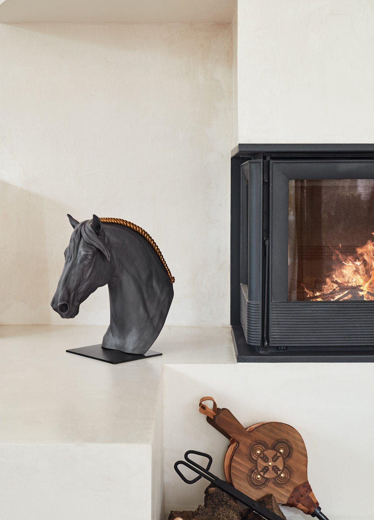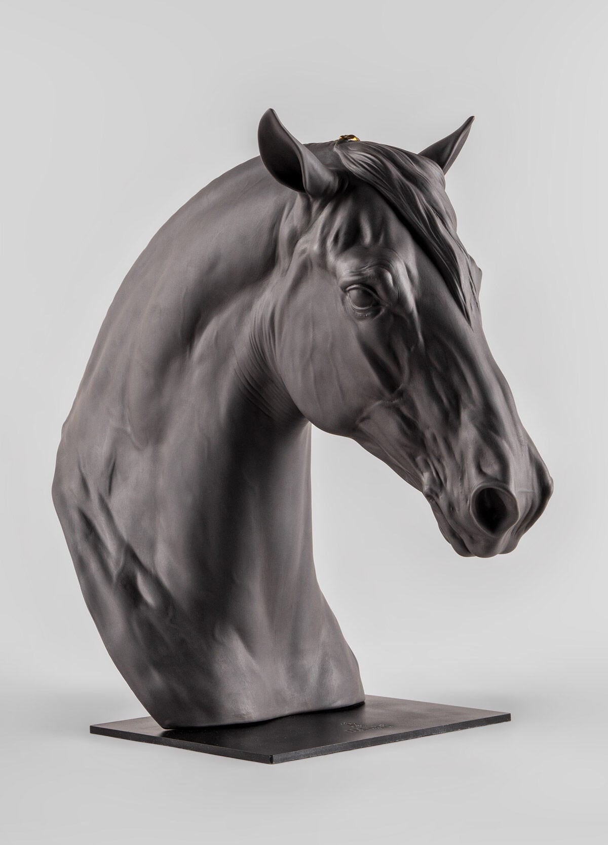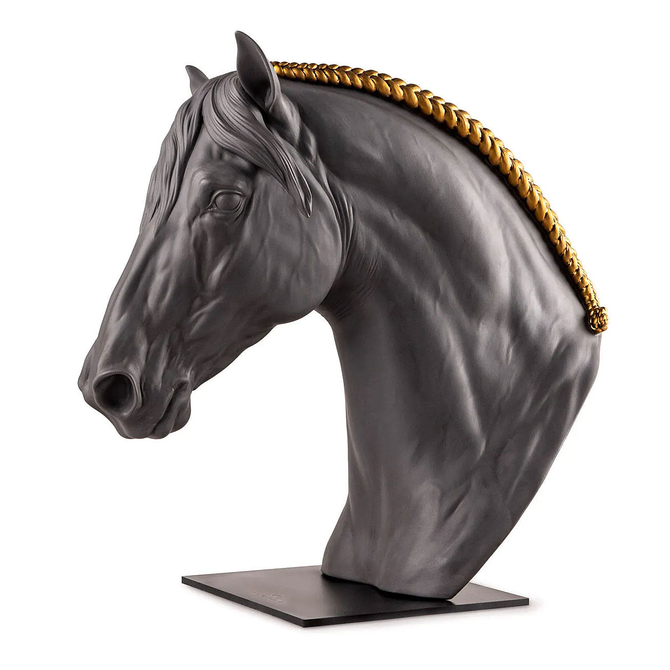 At once realist and stylized, this representation is an example of the detailed prior anatomical study undertaken by our artists and the precision of the modelling. A bust with great expressive force and decorative potential thanks to the contrast between the monochrome matte porcelain and the decoration with golden luster of the horse’s braided mane. This creation is part of the Animalia collection, a homage to the animal kingdom, an endless source of inspiration.usic.