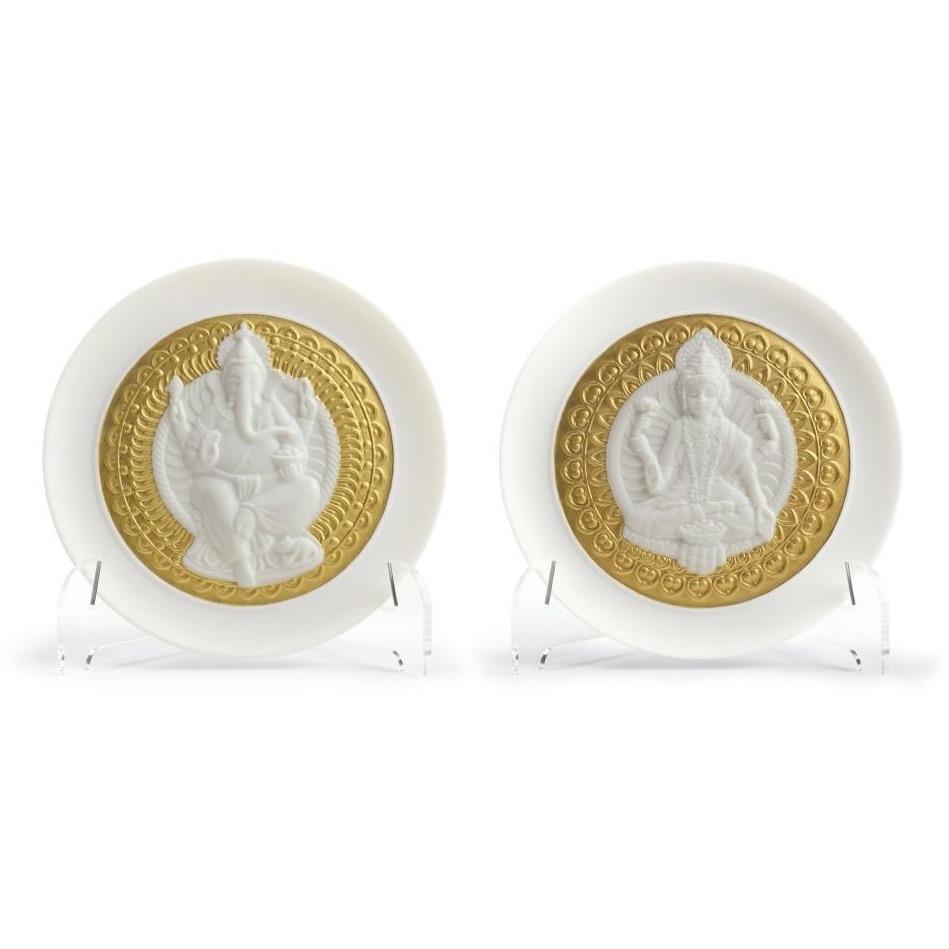 Lladro Goddess Lakshmi & Lord Ganesha Plates Set 01009155