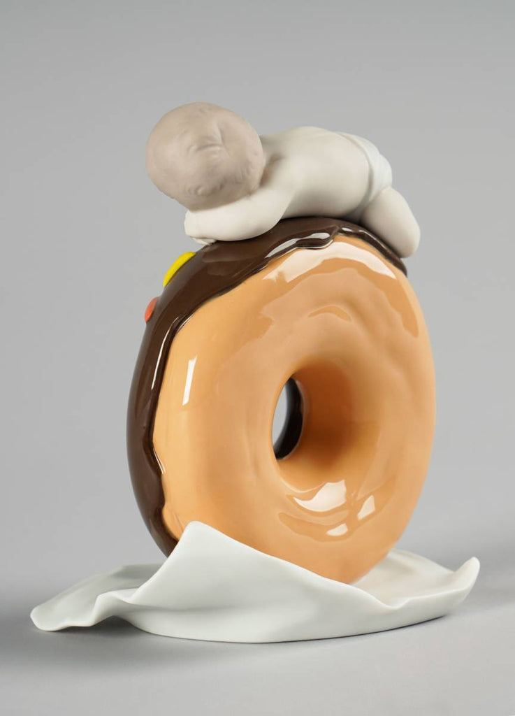 A piece mixing glazed and matte porcelain, decorated with intense tones meticulously applied by hand. A creation that combines tenderness with humor, making it an ideal gift for a newborn baby as it can be personalized in the space available for this purpose on the base. Handcrafted in Valencia Spain.