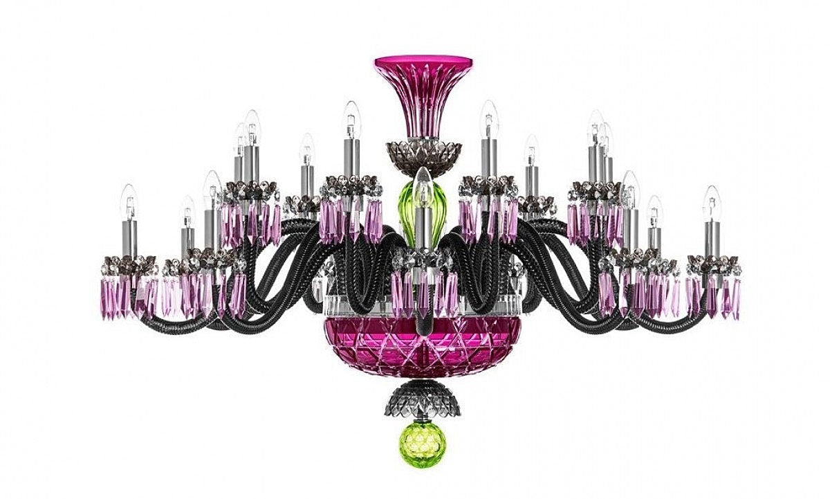 St Louis Crystal Arlequin 18 Light Horizontal Amethyst Chartreuse Green Flannel Grey Chandelier