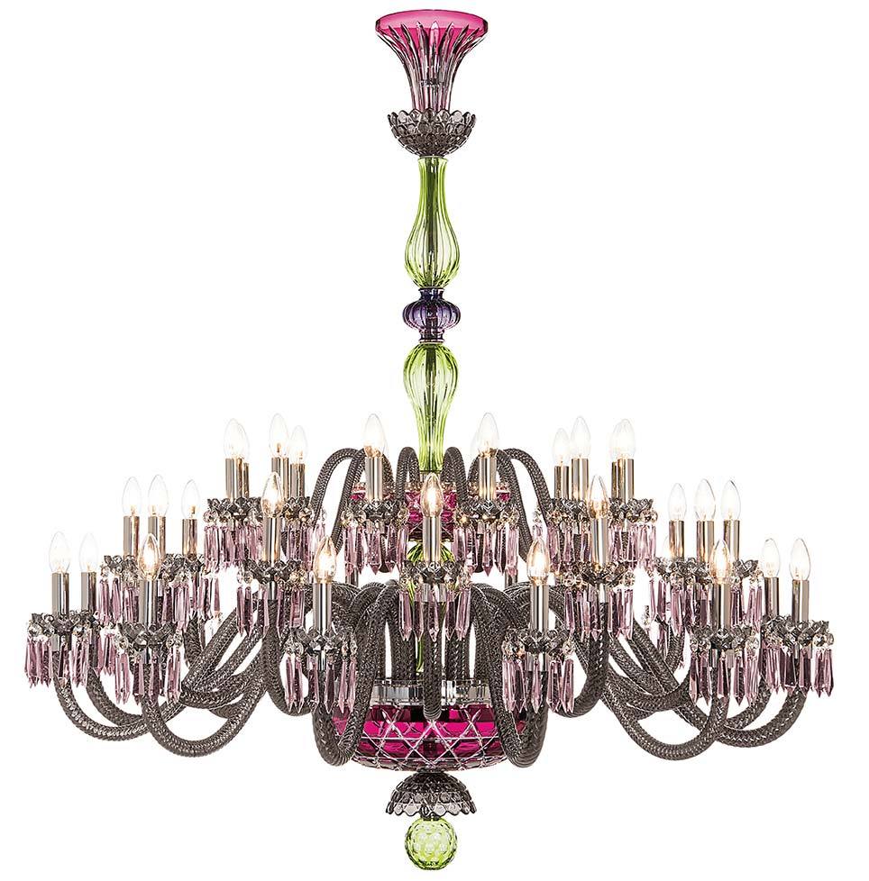 St Louis Crystal Arlequin 36 Light Amethyst Chartreuse Green Flannel Grey Chandelier