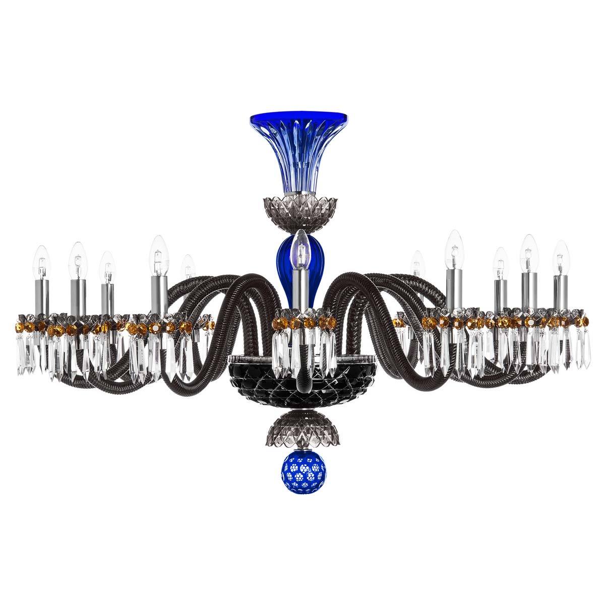 St Louis Crystal Arlequin Horizontal 12 Light Dark Blue Black Flannel Grey Chandelier