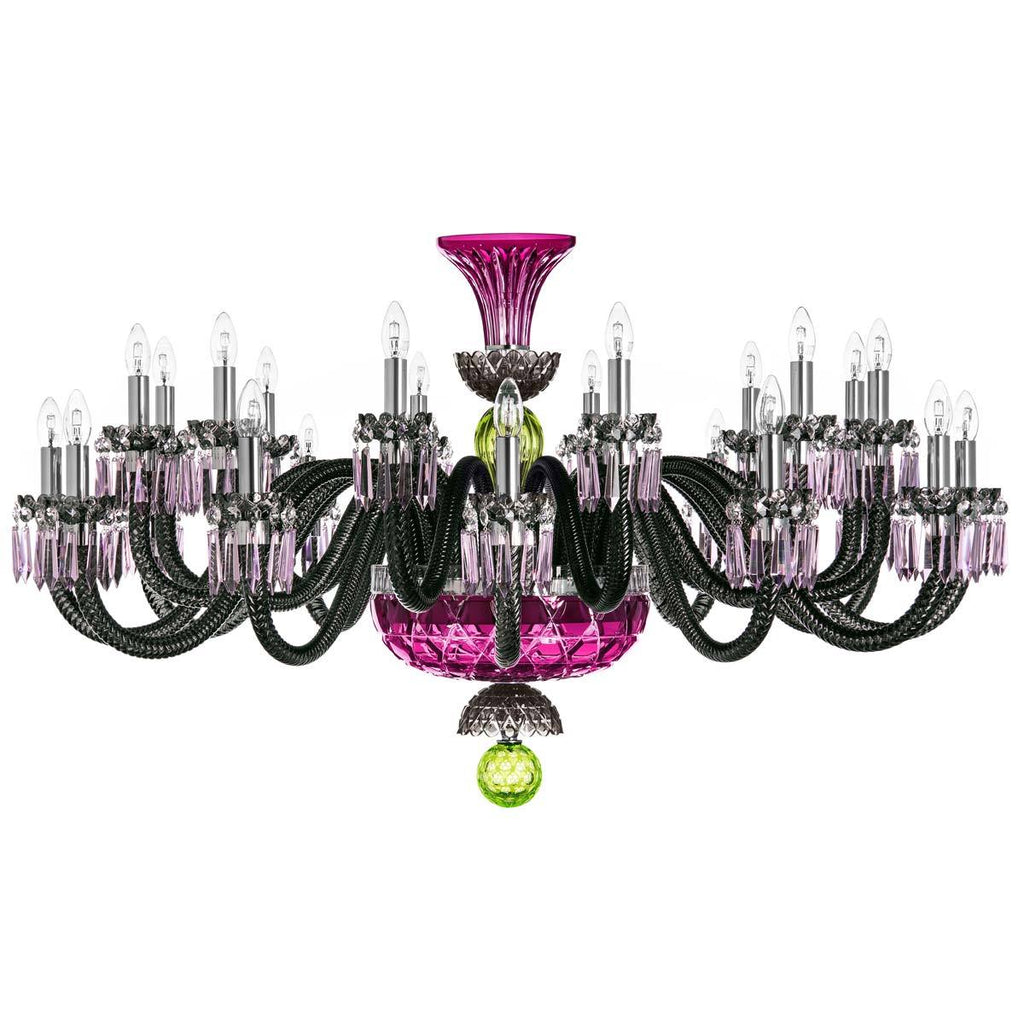 St Louis Crystal Arlequin Horizontal 24 Light Amethyst Chartreuse Green Flannel Grey Chandelier