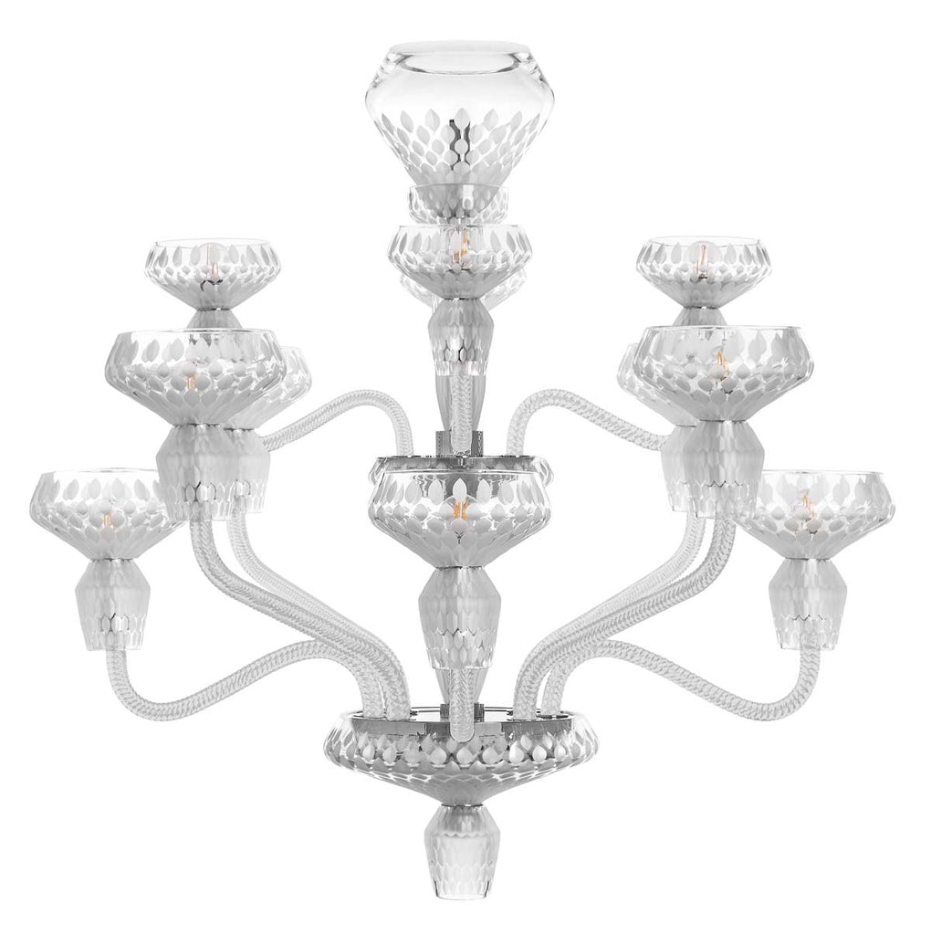 St Louis Crystal Folia 12 Light Satin Finished Chrome Plated Finish Chandelier