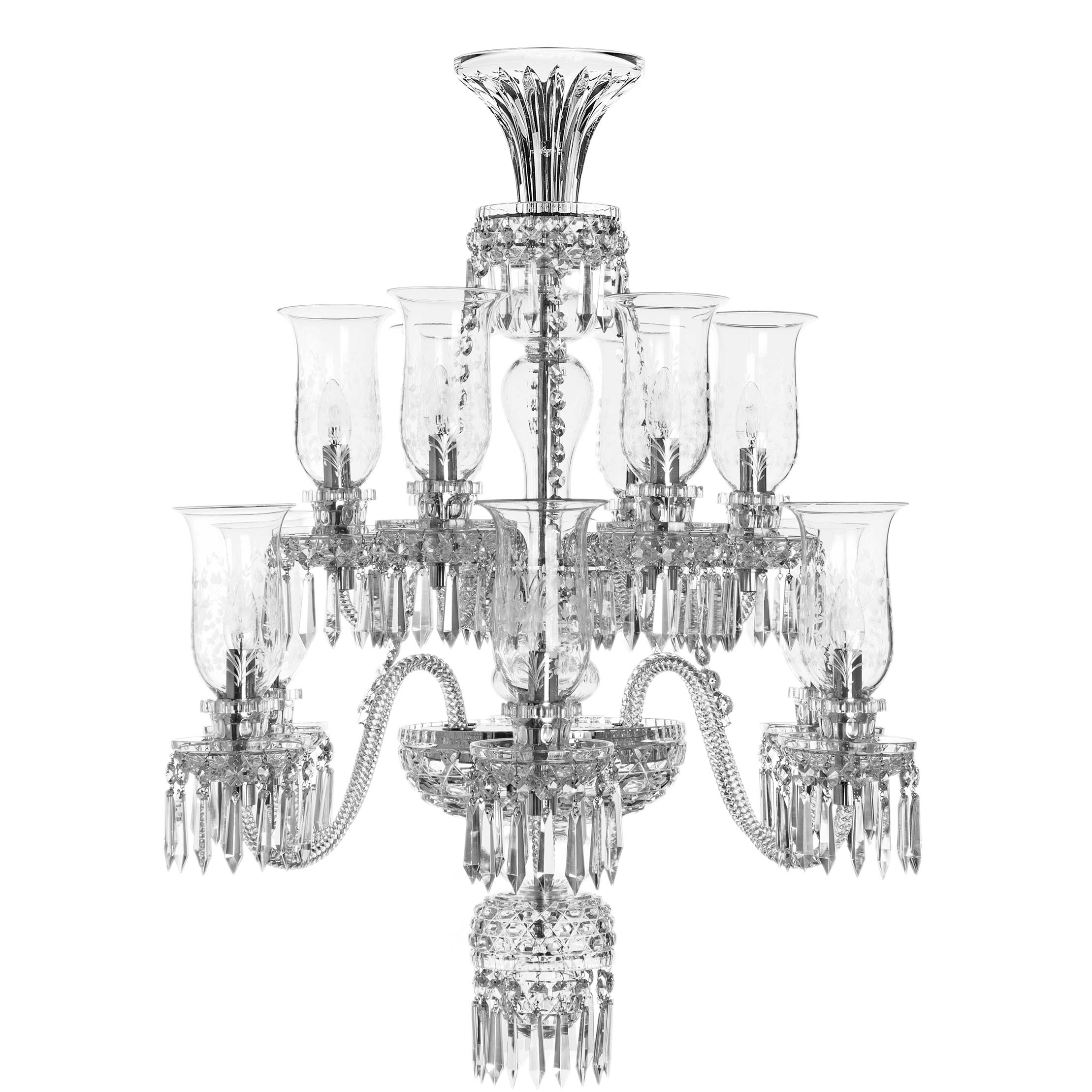 St Louis Crystal Royal 12 Light Short Chandelier With Lady Hurricanes
