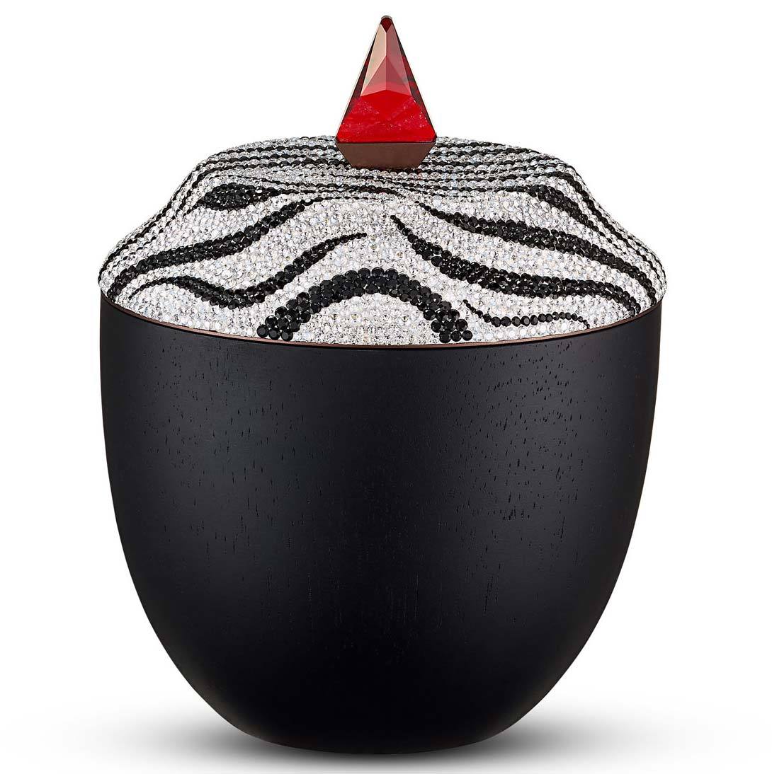 Inspired by the rich natural beauty of the African continent this elegant box combines wood metal and the unique sparkle of Swarovski crystal. Decorated with approximately 3 900 crystals in our iconic Pointiage technique each zebra-patterned lid takes nine hours to create. The red crystal handle is inspired by a ring that is worn by the Tuareg tribe and believed to have healing powers. Ideal for gifting especially with a little note or jewelry piece placed inside.