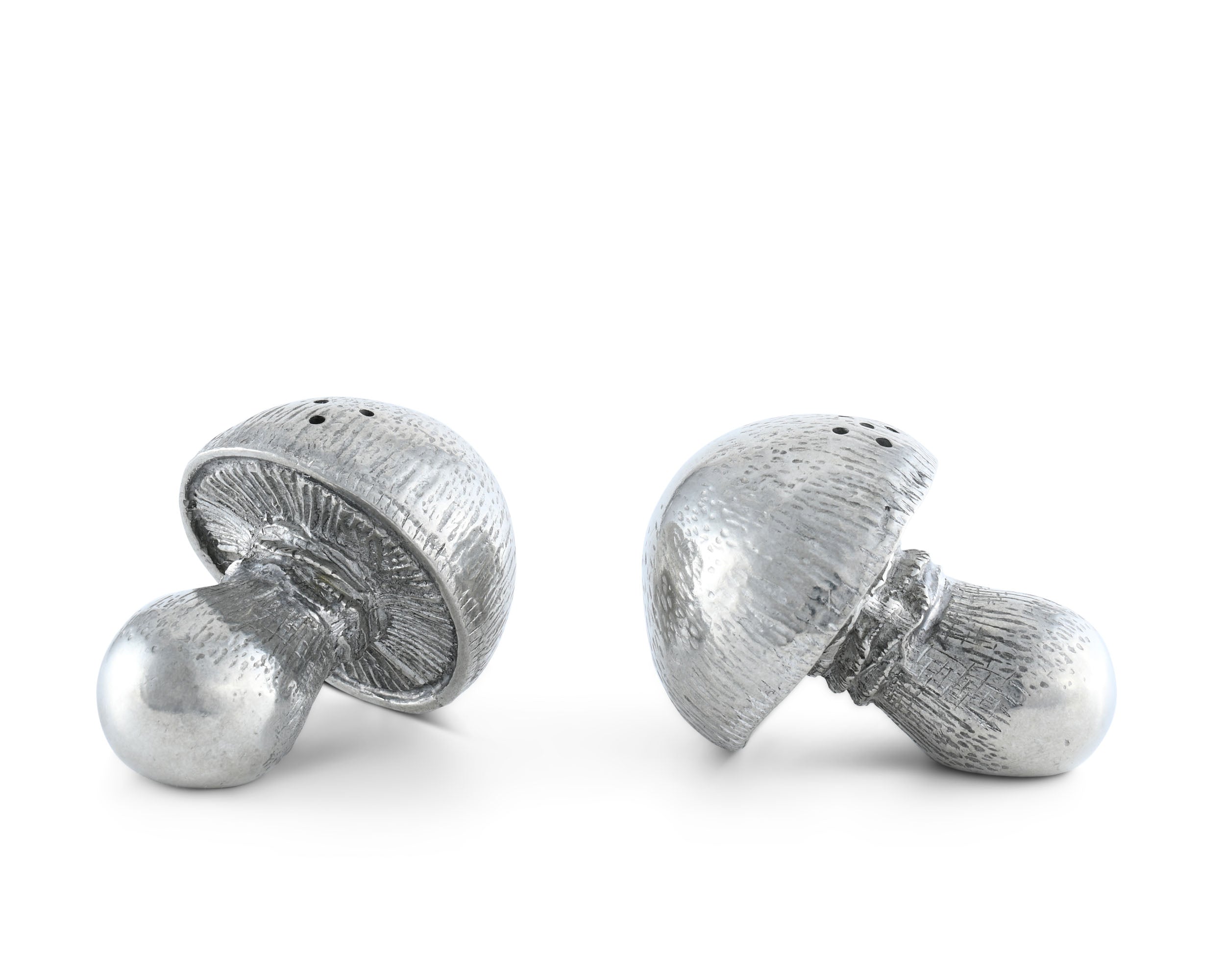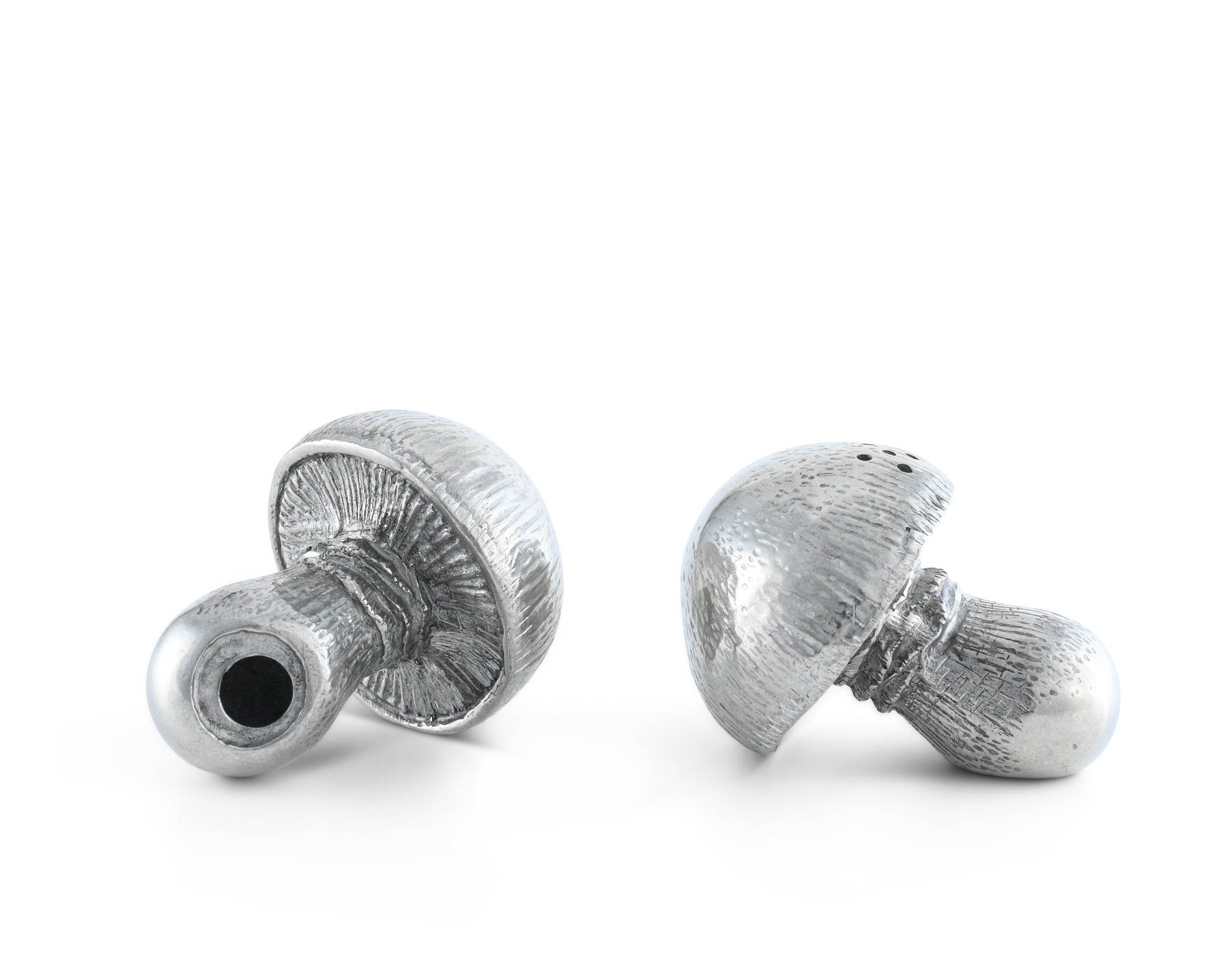 Fun to handle and cute as a button, Vagabond House's Mushroom Salt and Pepper Set adds a bit of fungal charm to your garden-themed table. Crafted in luxury-grade pewter, these piece feature exquisite gills underneath their large, umbrella-shaped caps. Our craftsmen capture the unpredictability of the mushroom in the various detail throughout the design of these dispensers.