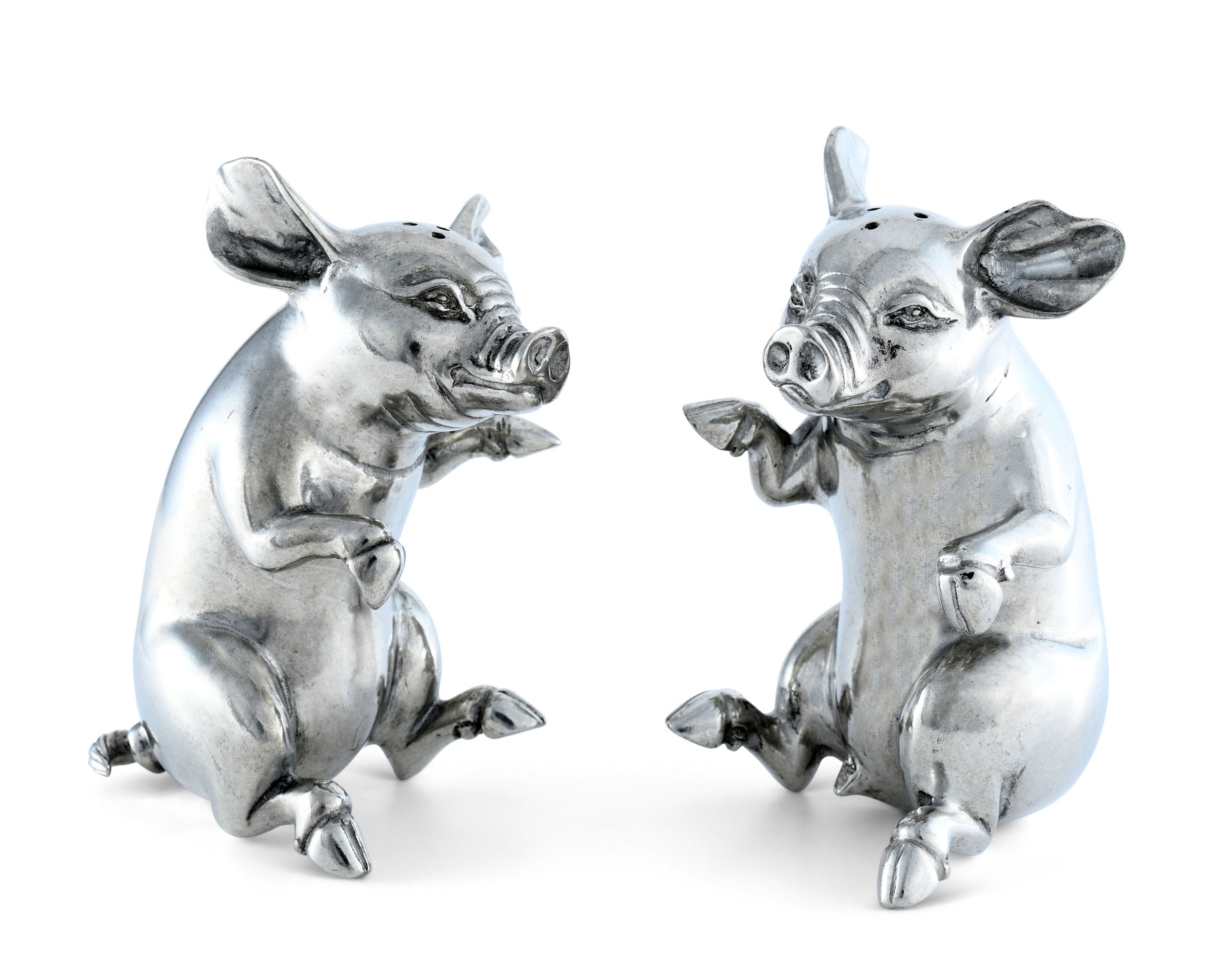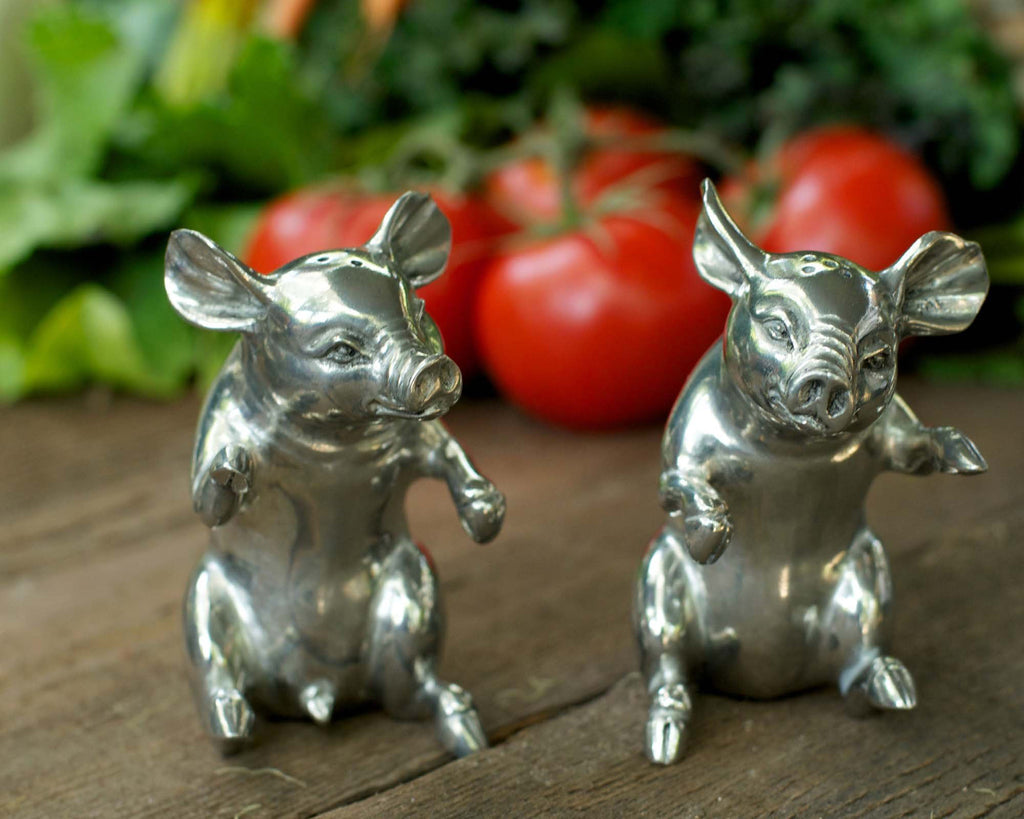 Sitting up and begging for a treat or two, these two little Vagabond House happy pigs are actually a whimsical, charming salt and pepper set.