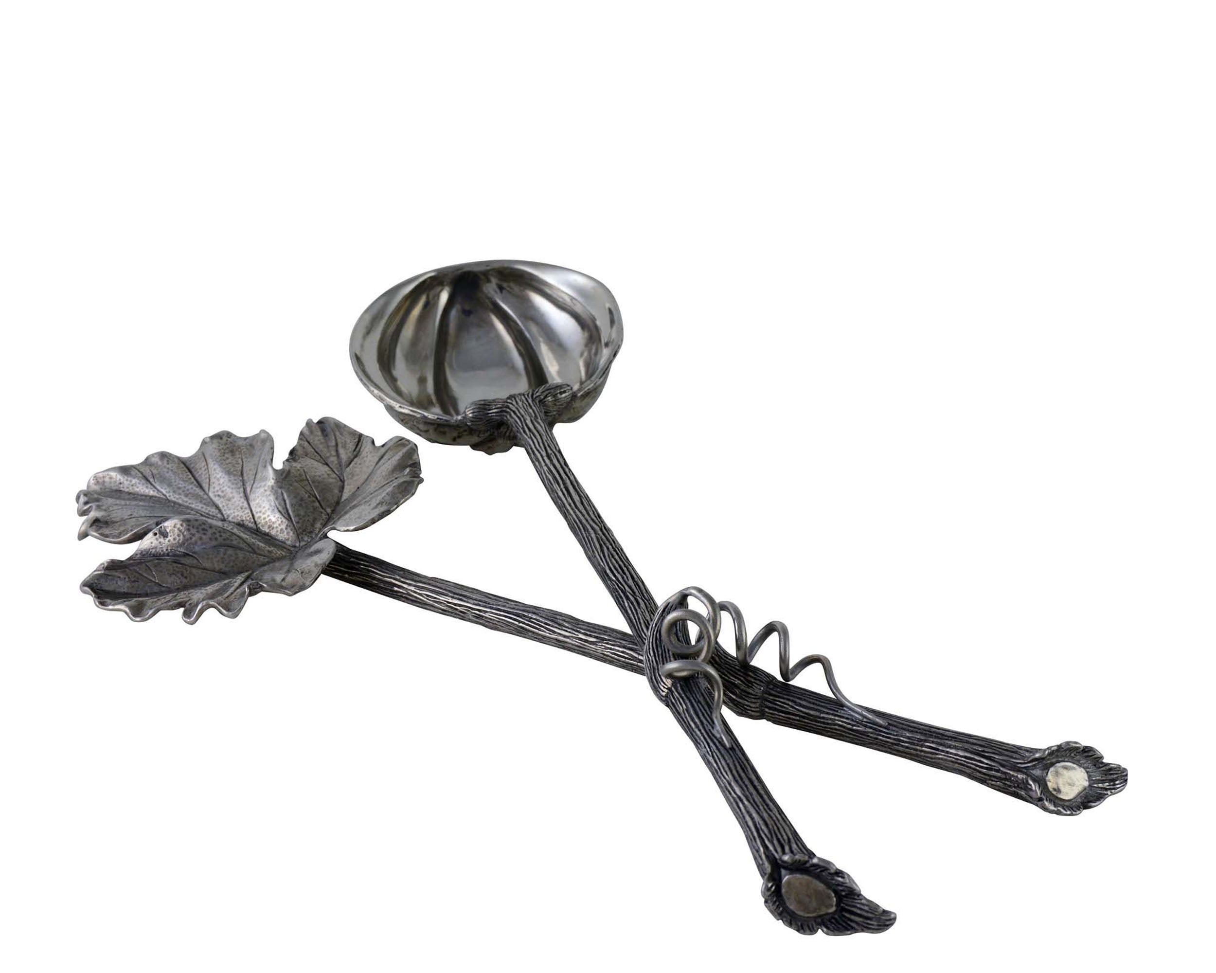 Nothing says fall like leaves and pumpkins, and you get both with Vagabond House's Autumn Vine Salad Server Set. Crafted in luxury-grade pewter, these 12-inch pieces feature figural wood handles with vines swirling off of each grip. A veiny leaf forms the head of one server, while a pumpkin creates a defined bowl atop the other.