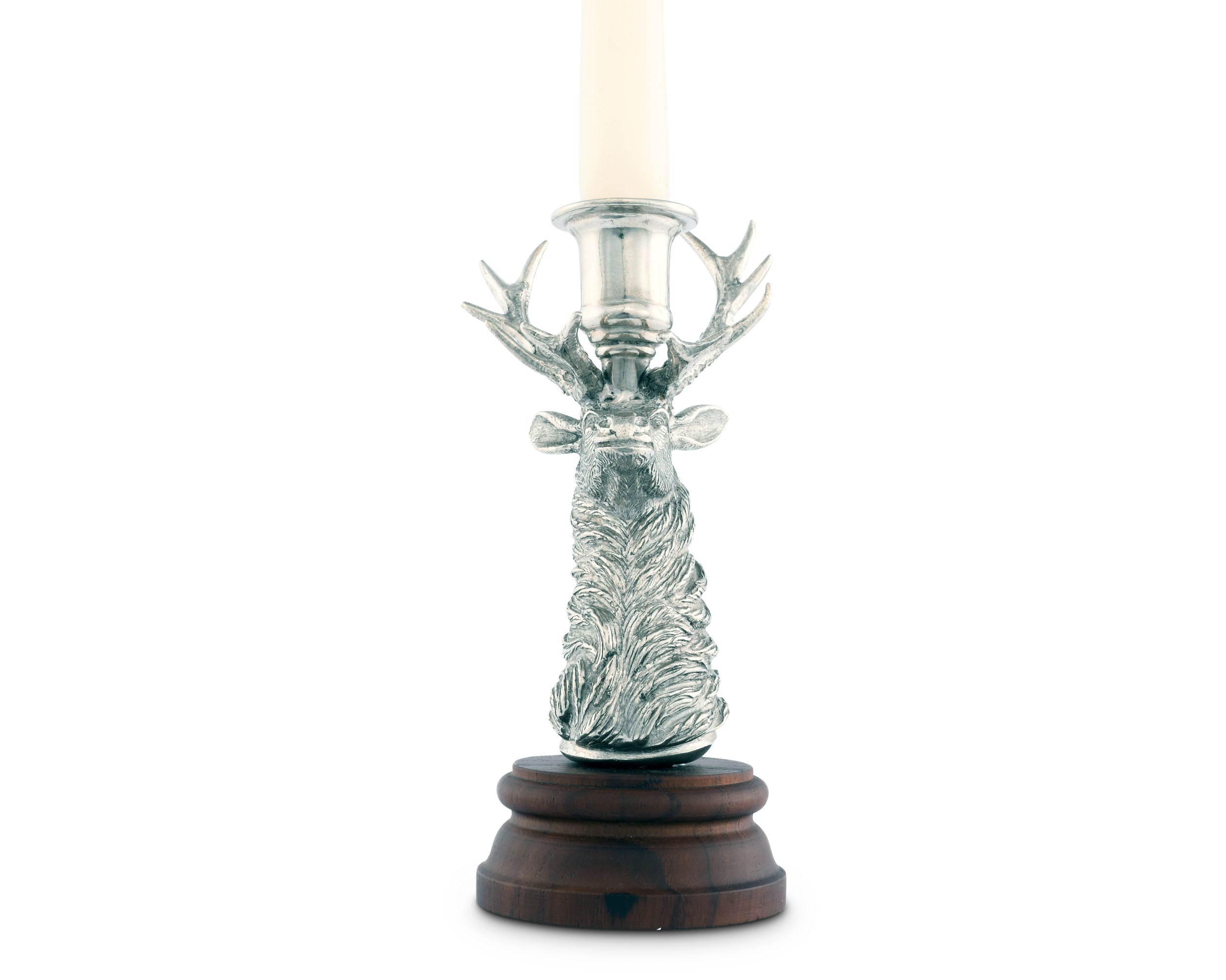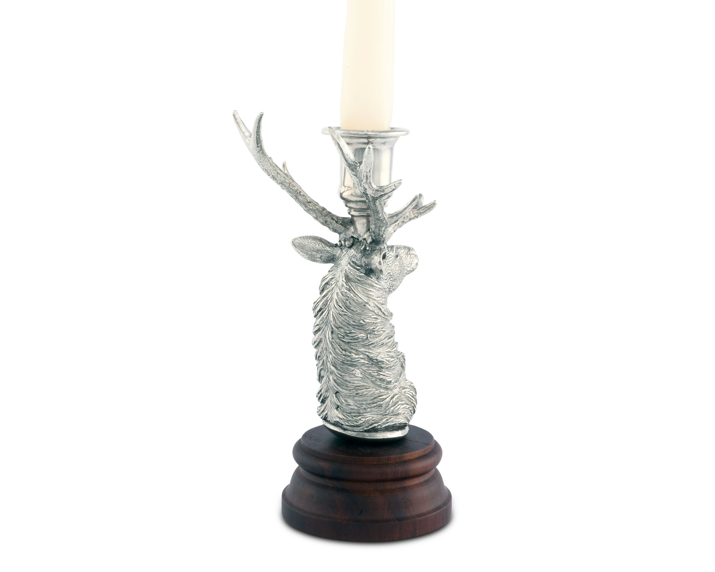 Vagabond House Lodge Style Pewter Elk 1 Taper Candlestick B101S